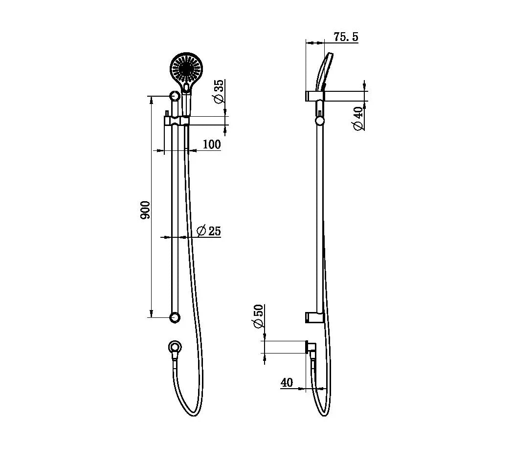 | Purchase Includes | Shower Rail, shower head and hand shower, hose |