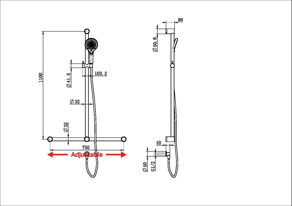| Purchase Includes | Shower Rail, shower head and hand shower, hose |