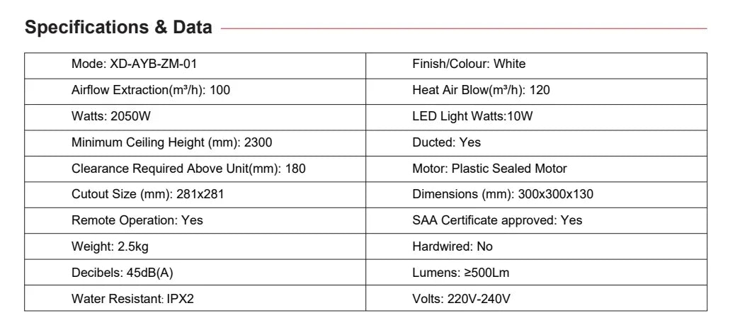 • Low profile design to suit any small to medium bathroom application