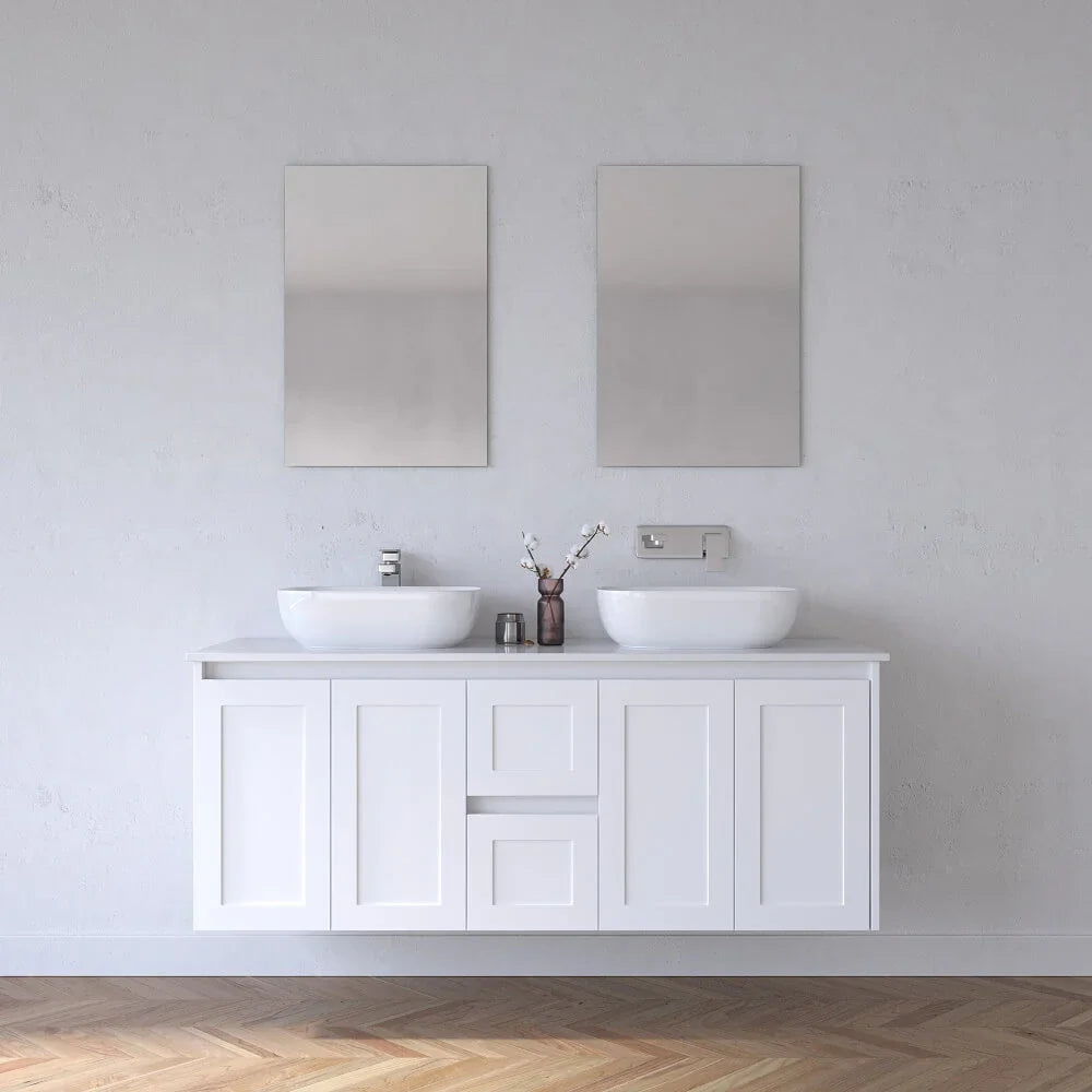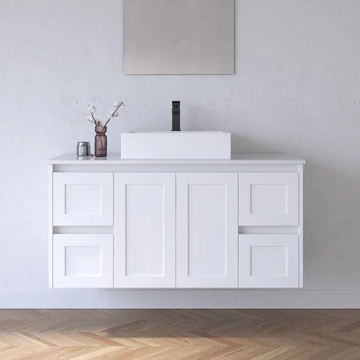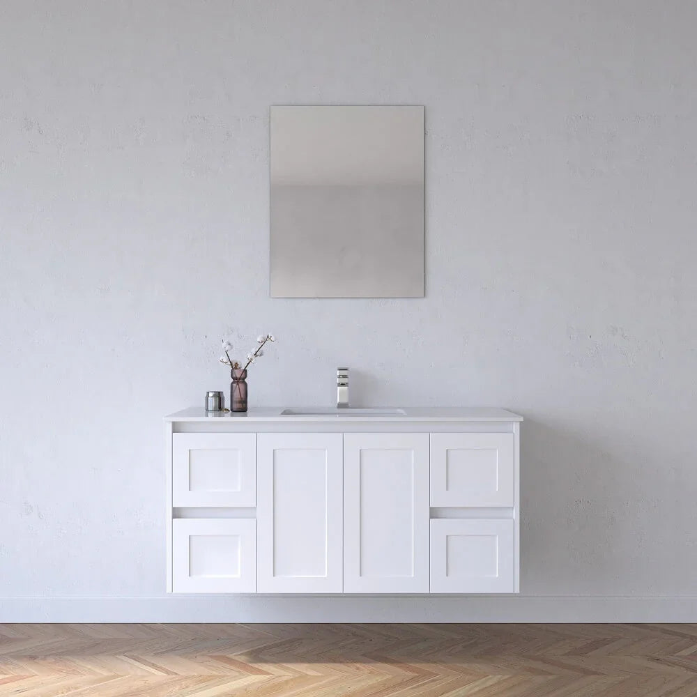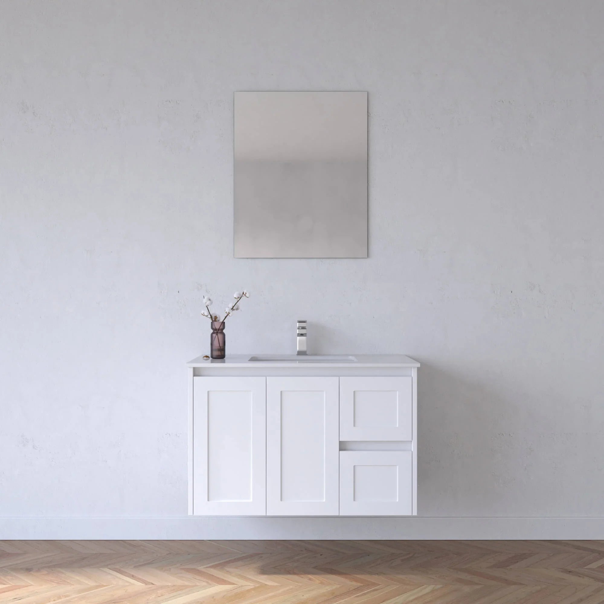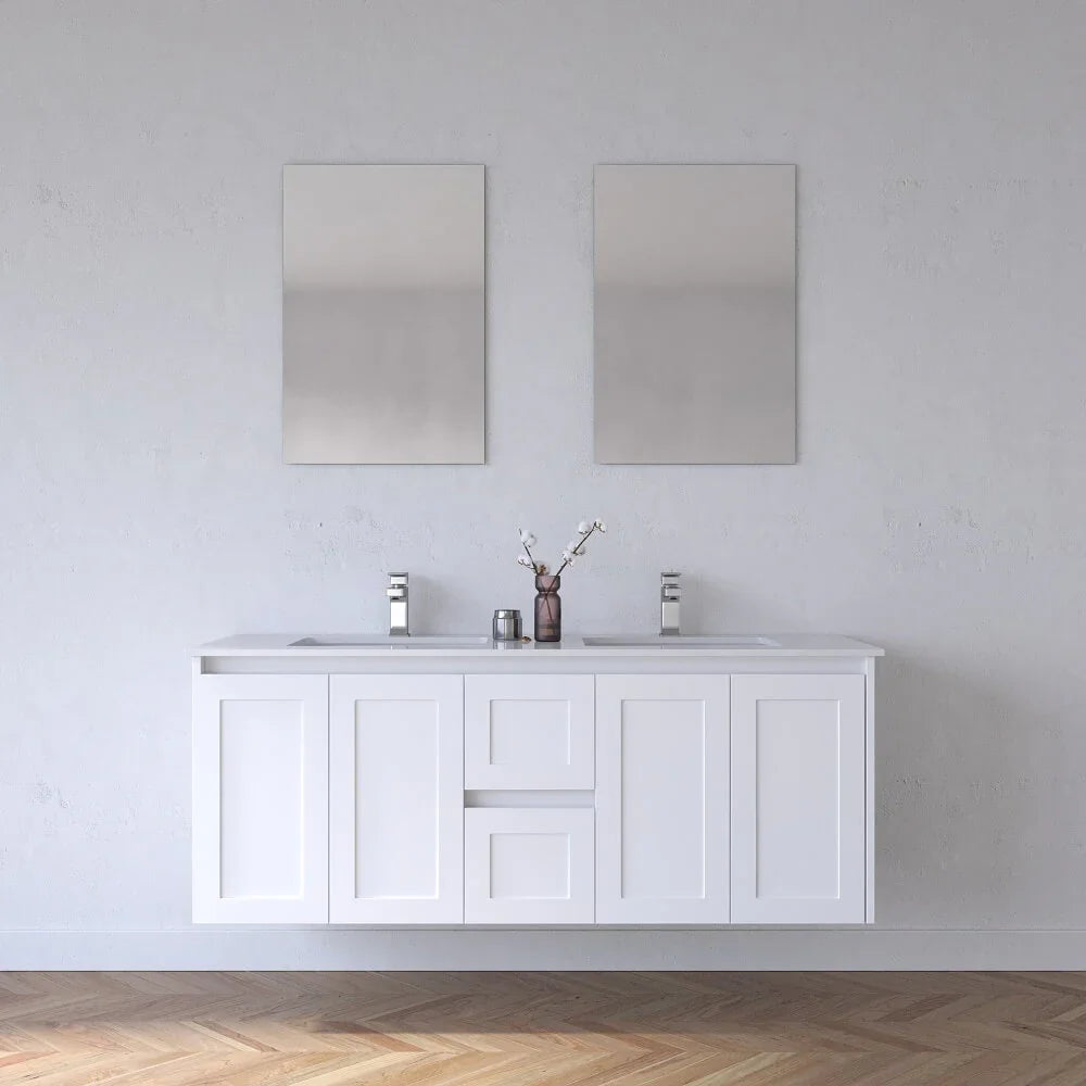 Elevate your bathroom with the BV01WH Wall Hung Vanity, a stunning blend of modern minimalism and functional luxury. Designed for those who love a sleek, handle-free aesthetic, this vanity features a Matte white 2-pack polyurethane Shaker Style finish that resists moisture, scratches, and stains while adding a bright, spacious feel to your bathroom.