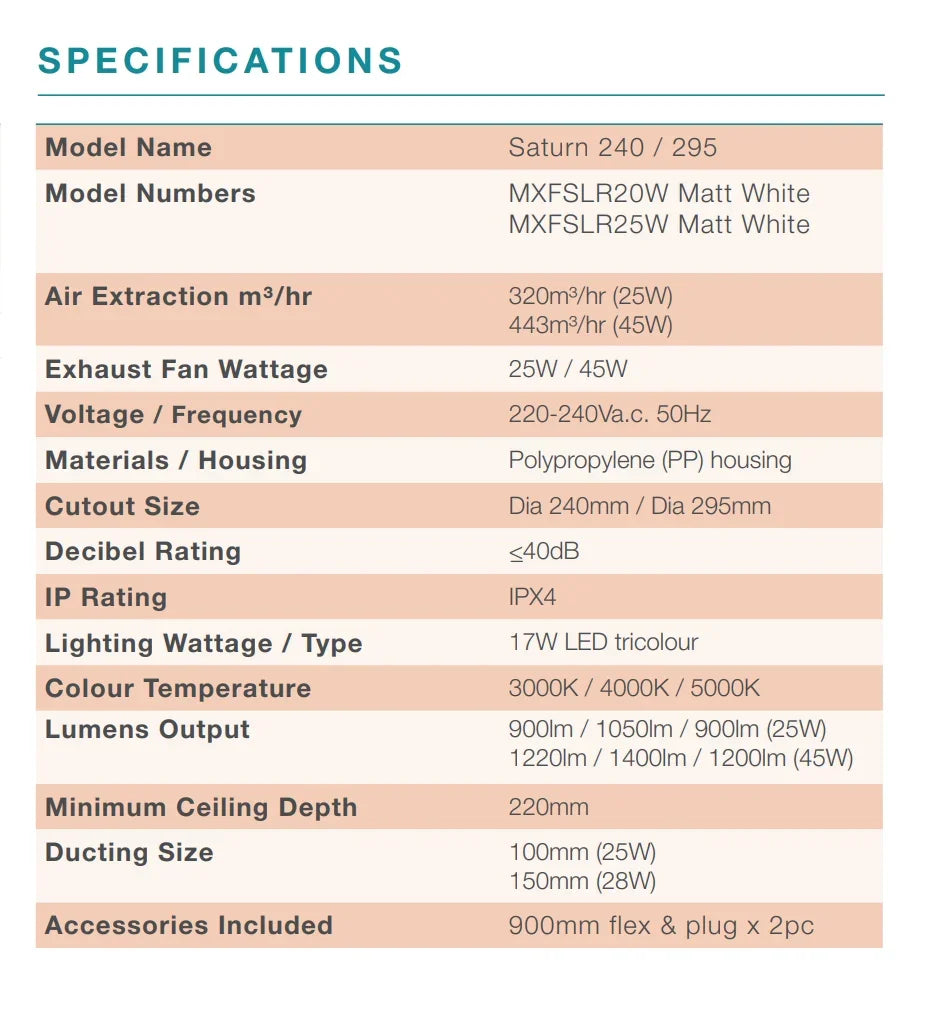 • Easy installation clamps to fit and secure fan into ceiling