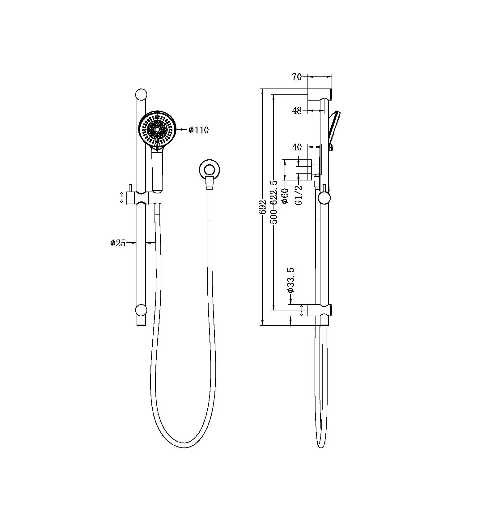 | Purchase Includes | Shower Rail, shower head and hand shower, hose |