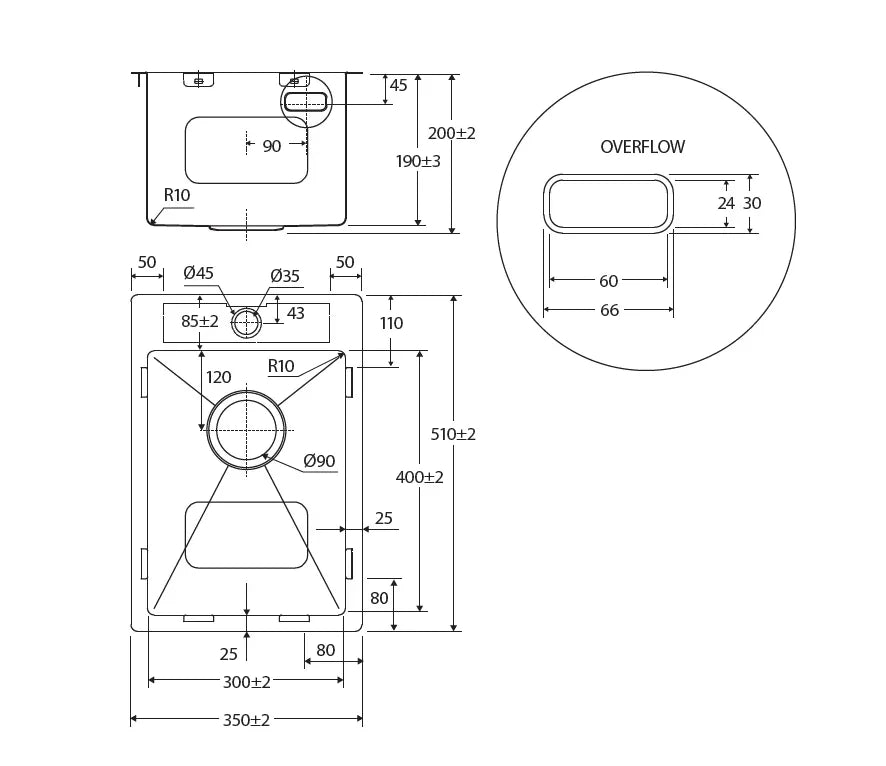 | Bowl Size | W 546 x D 406 x H 228mm |