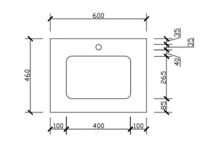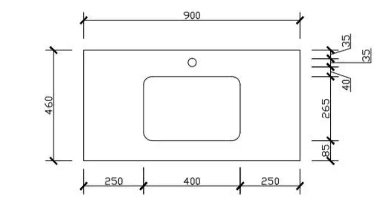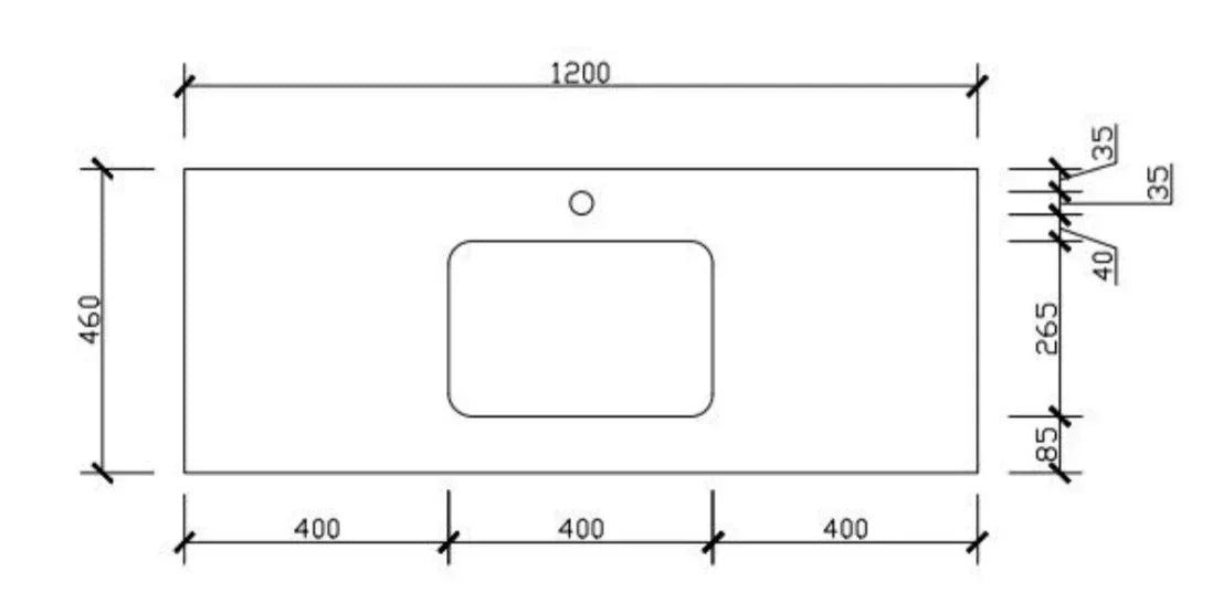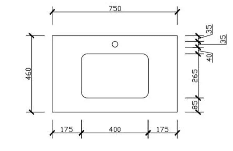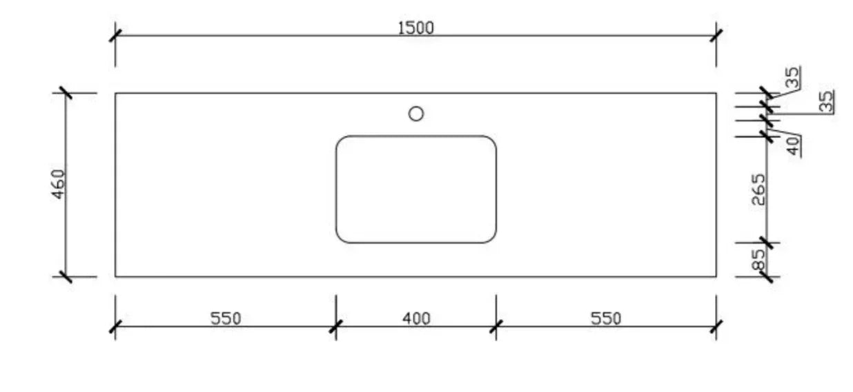 • 25 mm thick silica free solid surface top with 12 o'clock pre-drilled taphole