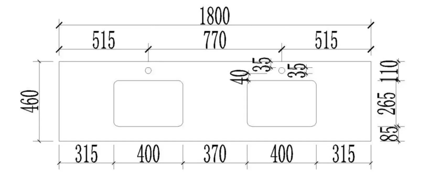 • Extra charge applies to hole drilling service at $70 per hole for extra 35mm taphole size