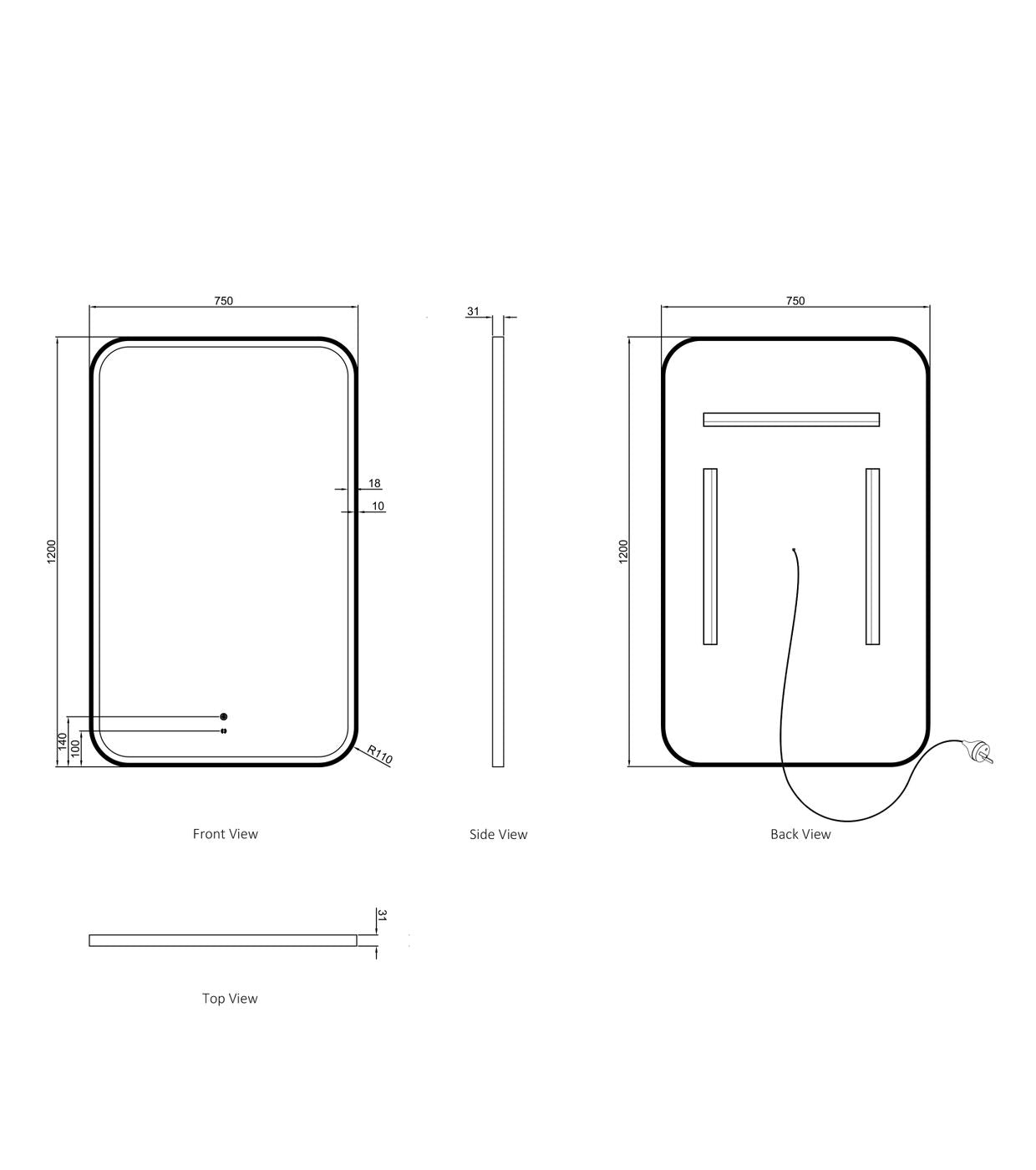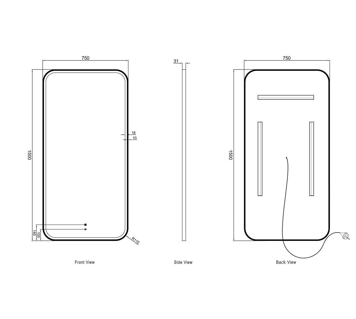 | • Anti-fog + 5mm Copper-free mirror with Acrylic Frame |