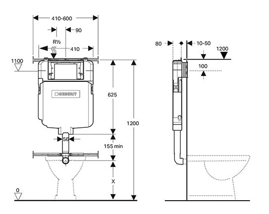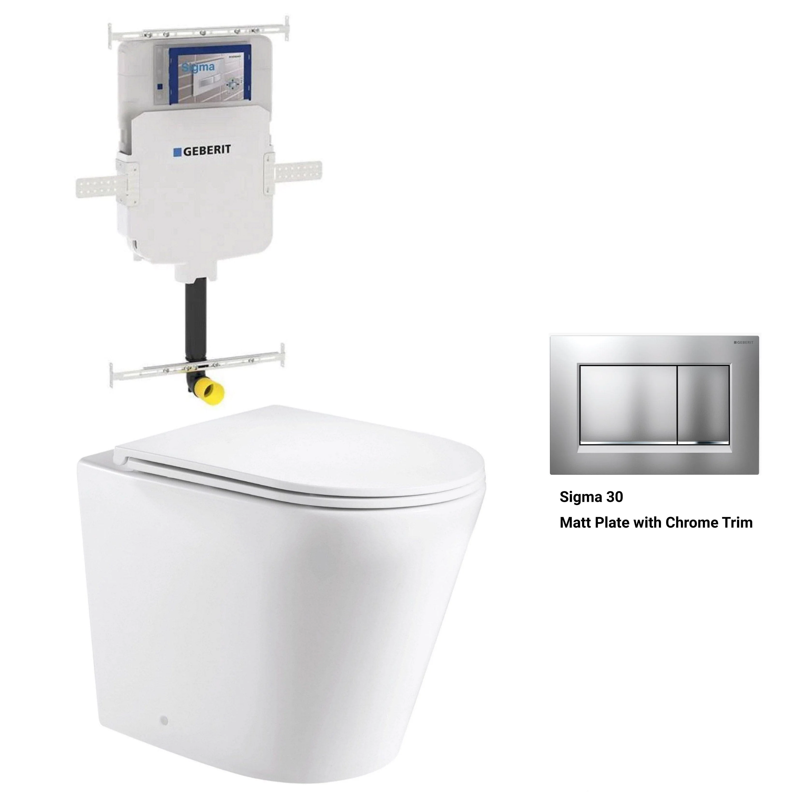 BM Geberit In Wall Package - Zurich Tornado Rimless Floor Pan, Inwall Cistern and Button