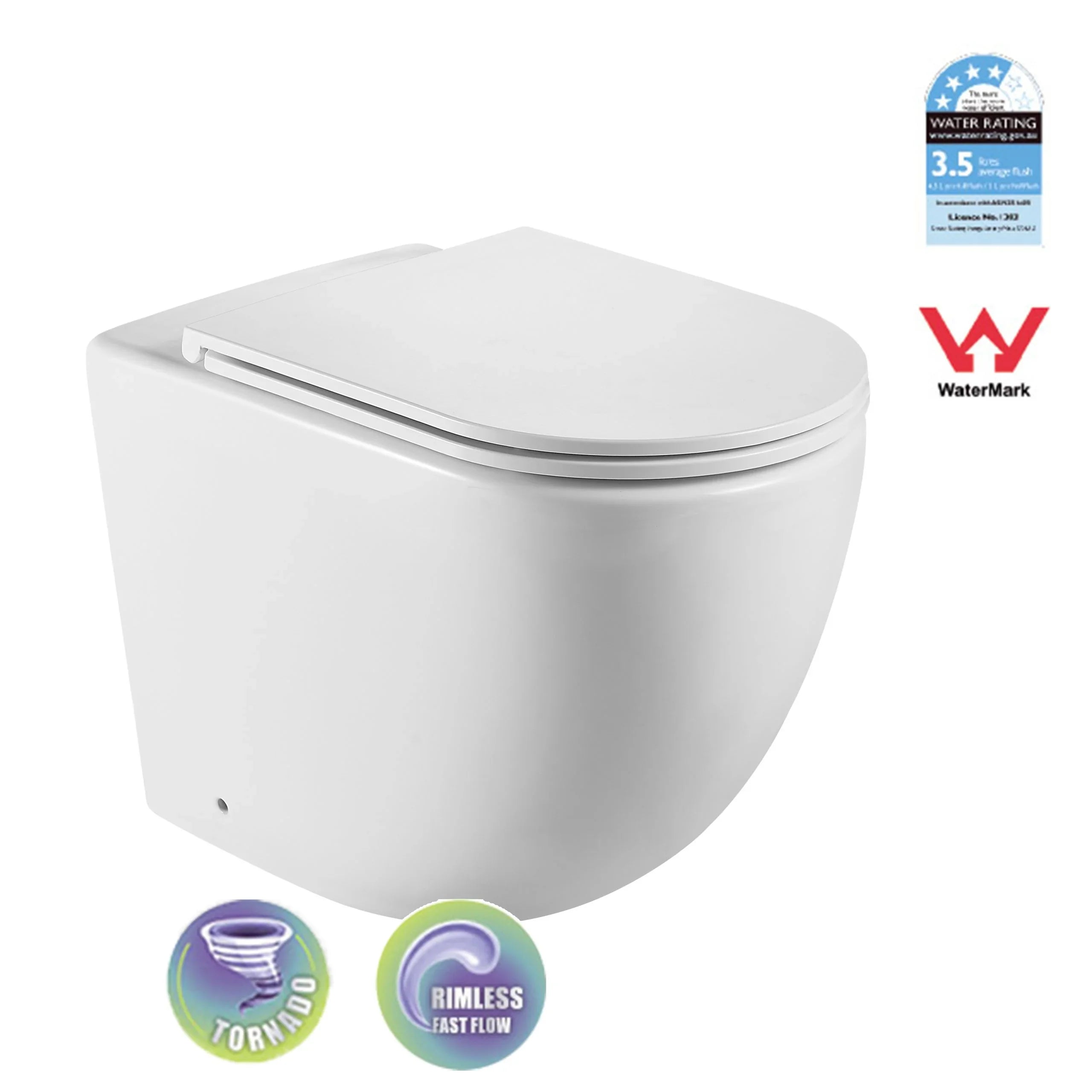 BM Lagos Raised Height Tornado Rimless Flush Floor Mount Pan with Soft Close Seat - White (4 Star)