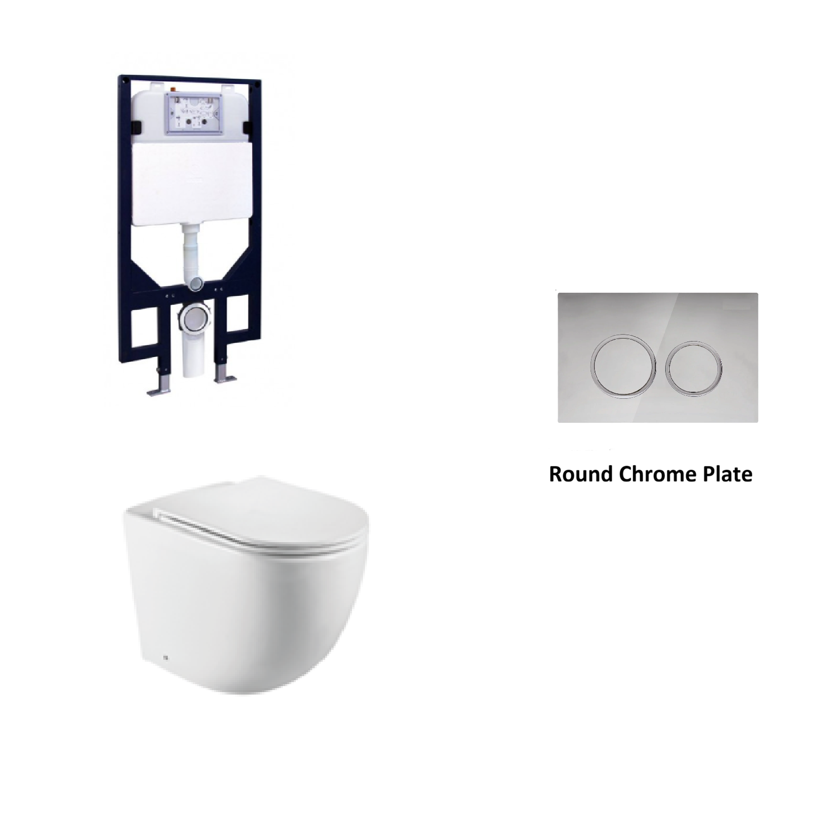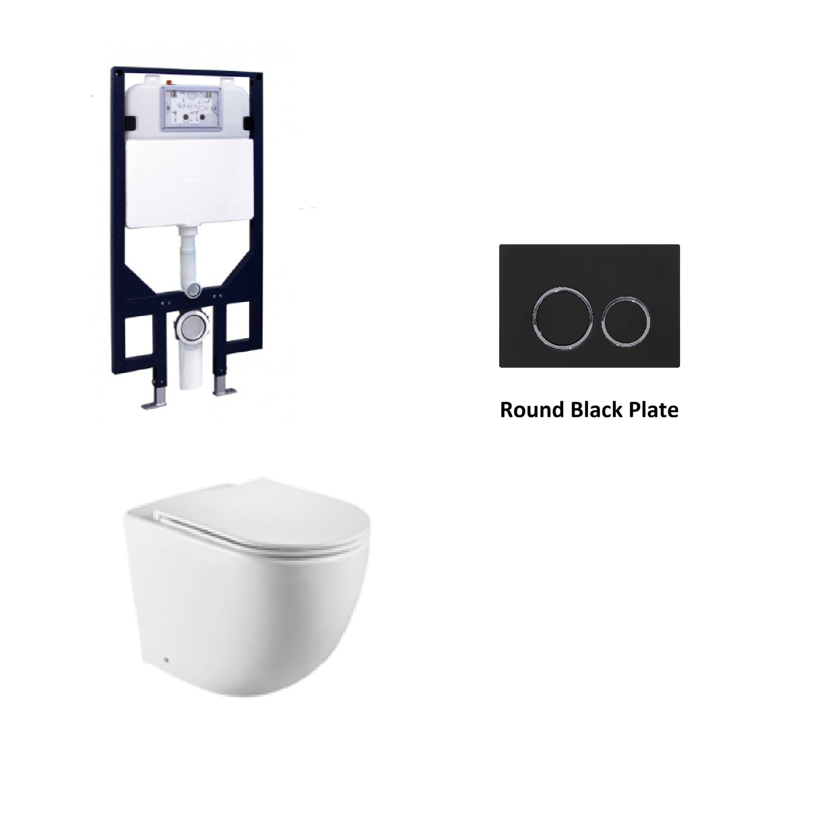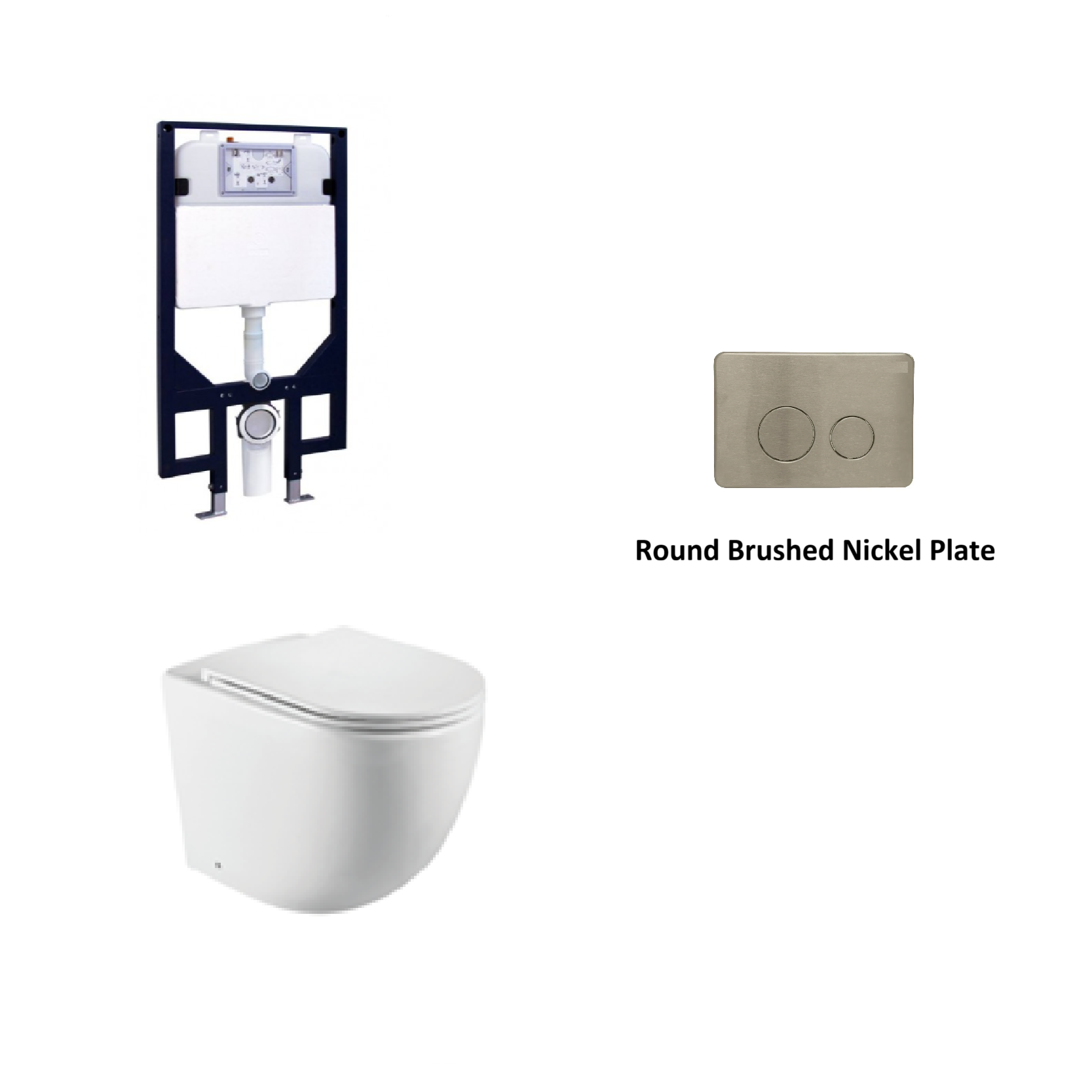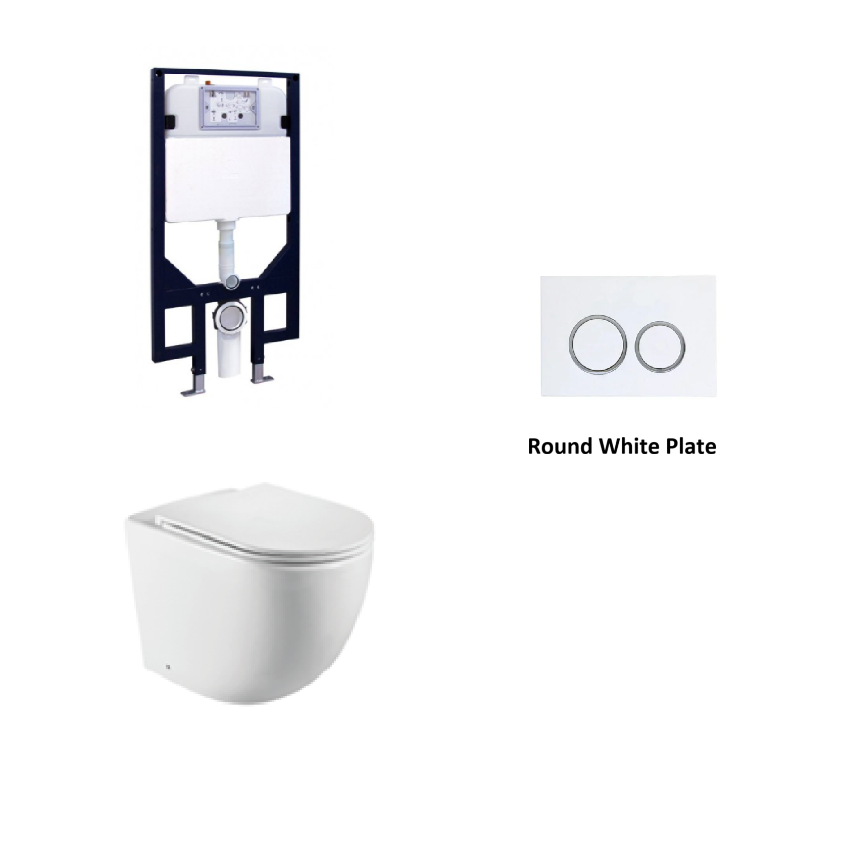 BM R&T In Wall Package - Tornado Rimless Wall Hung Pan, Inwall Cistern and Button