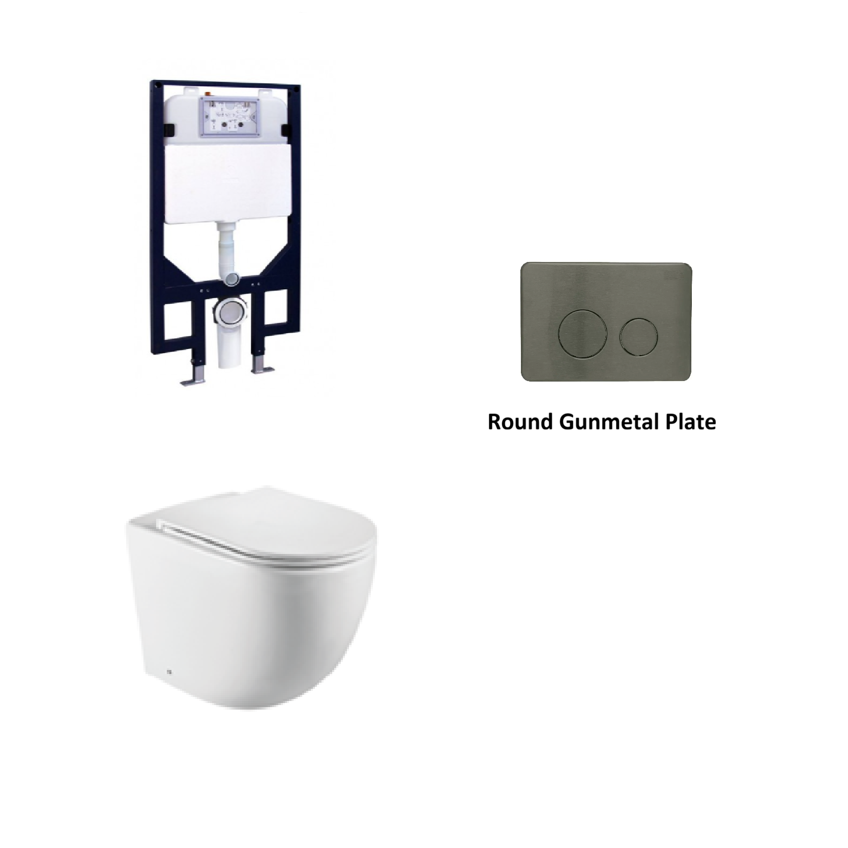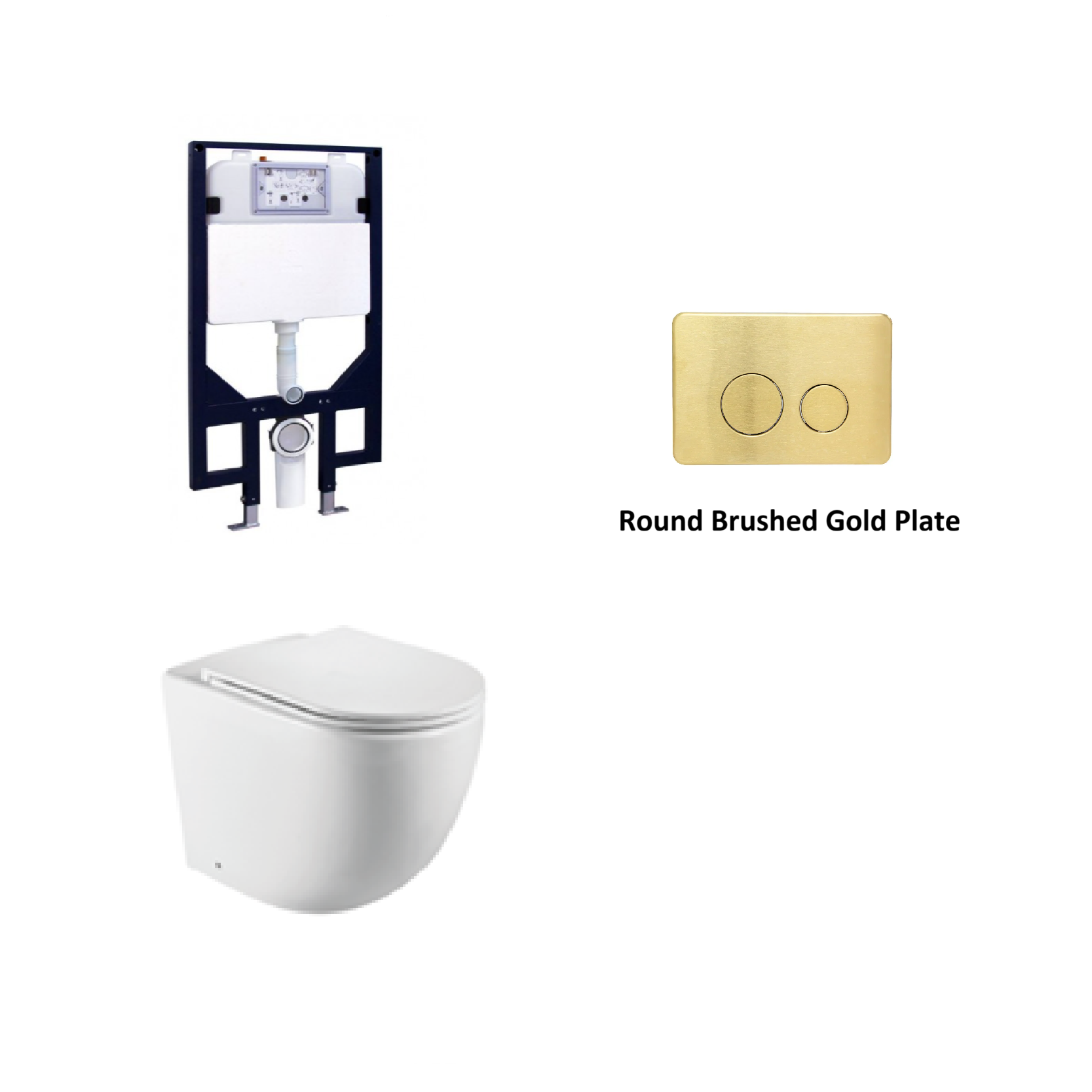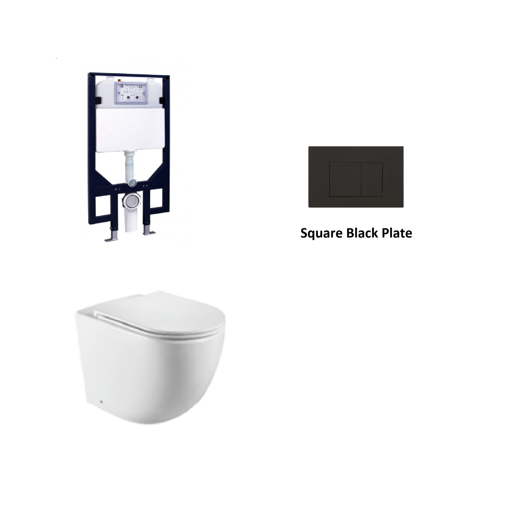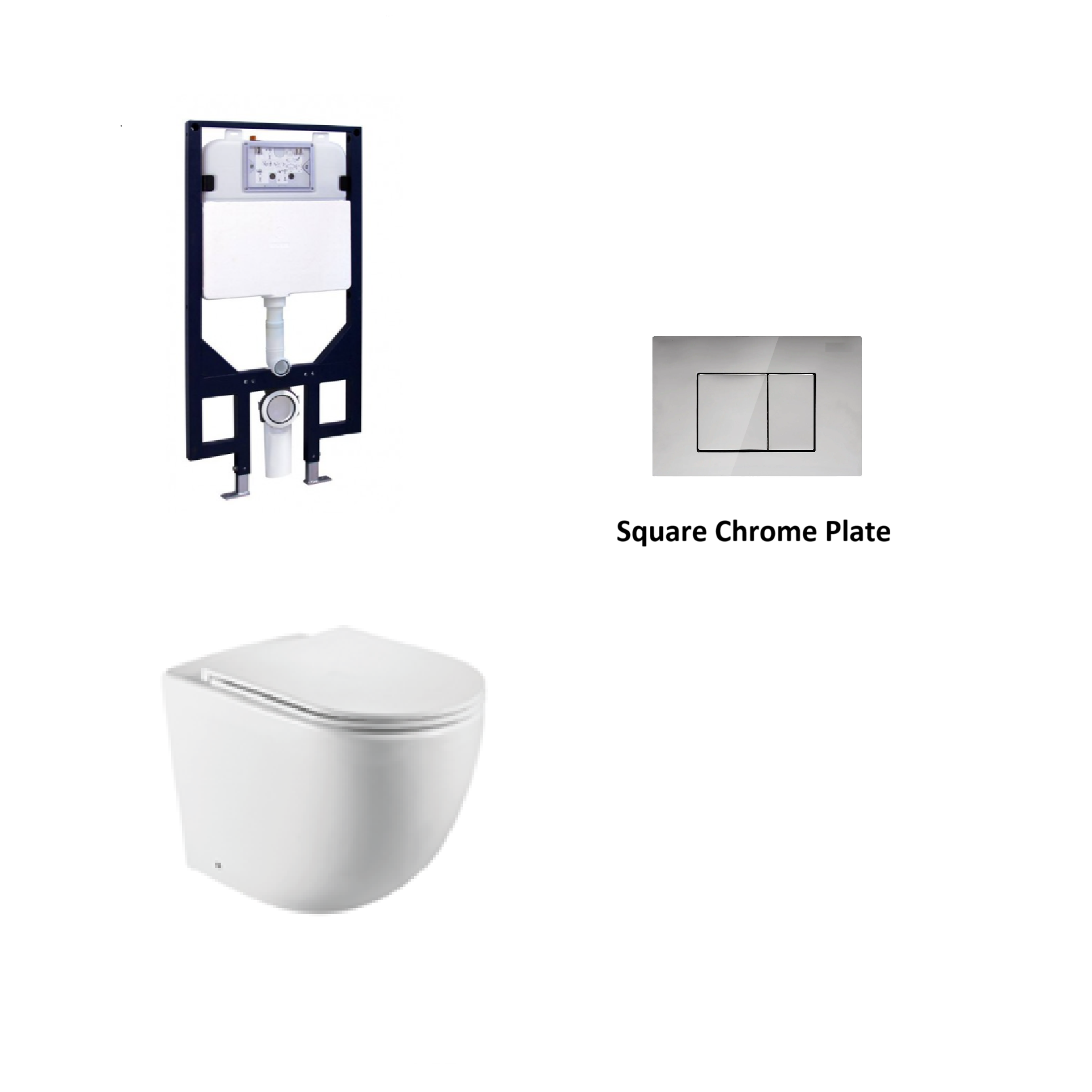 BM R&T In Wall Package - Tornado Rimless Wall Hung Pan, Inwall Cistern and Button