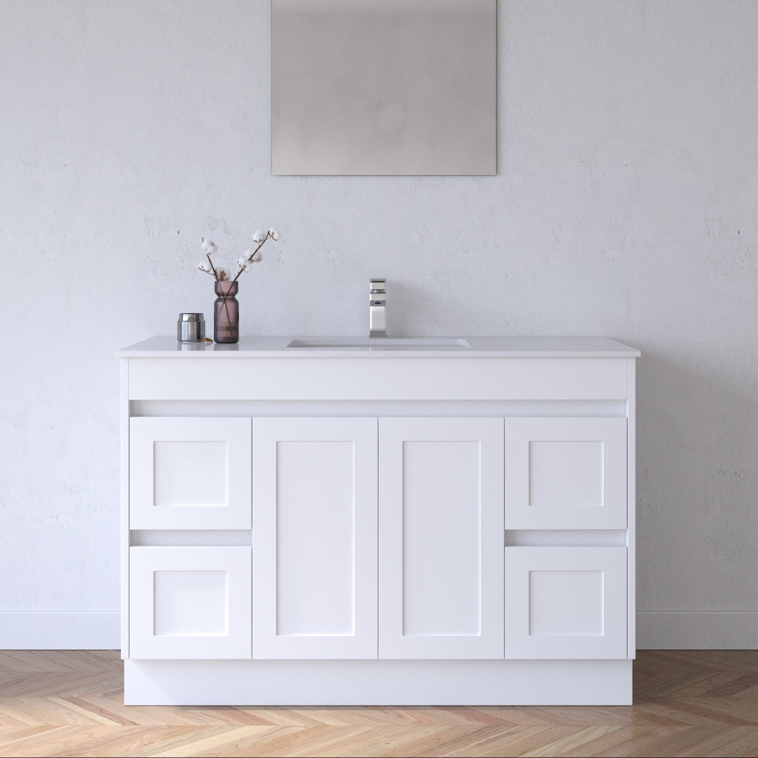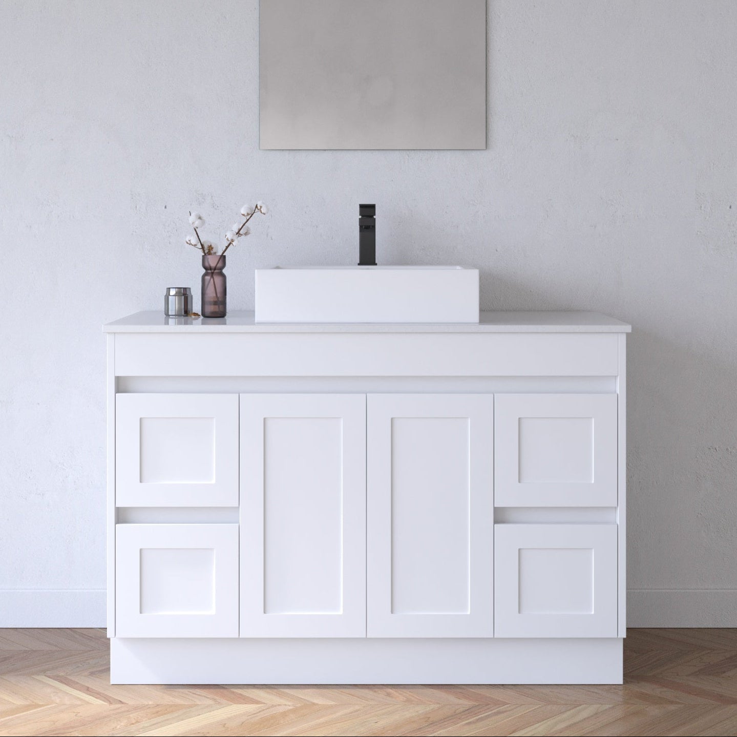 The BV01 Series is a stunning fusion of minimalism and modern elegance, featuring soft curved corners and a refined fluted pattern. Finished in matt white, this vanity brings a calm and luxurious atmosphere to any contemporary bathroom.