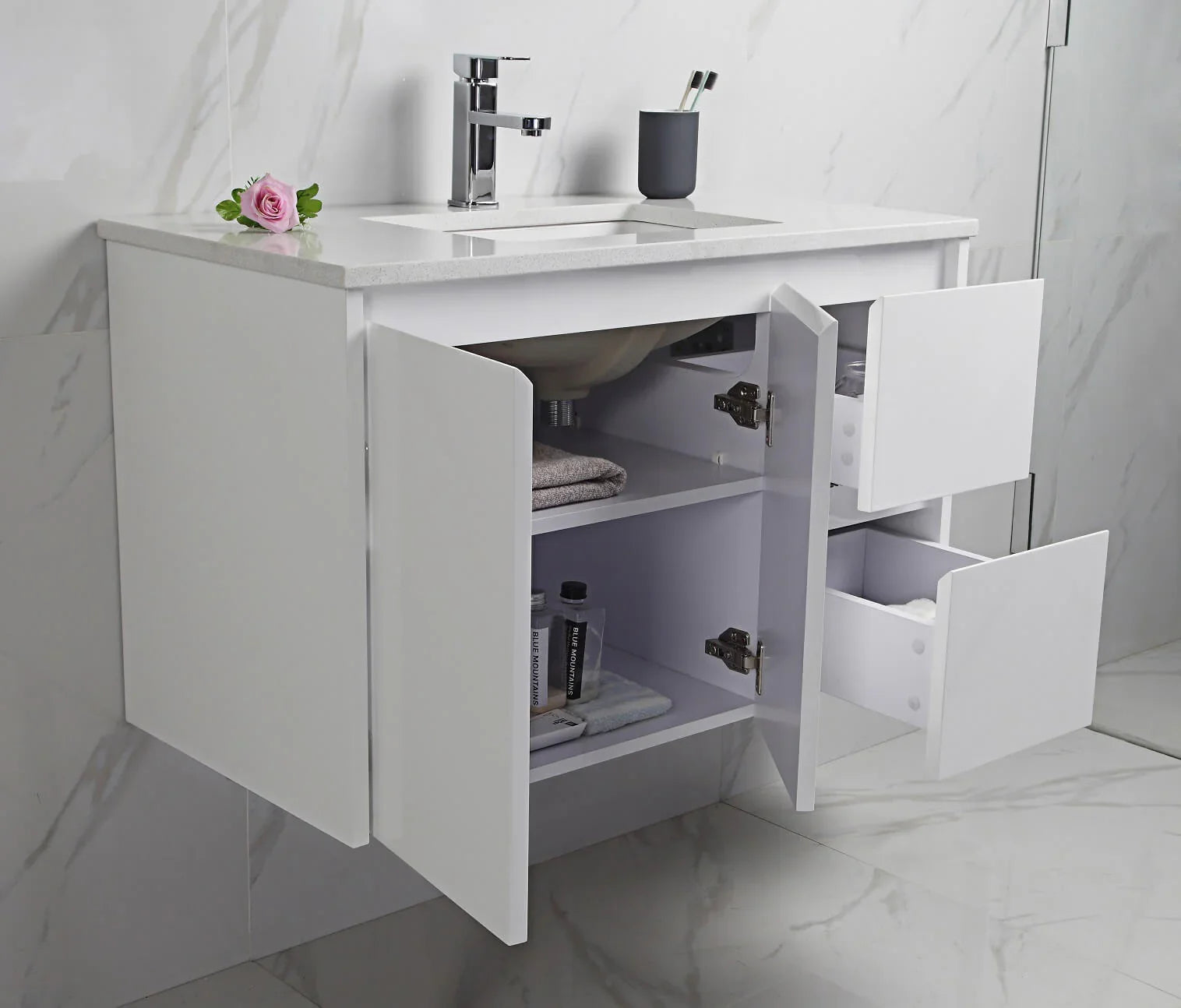 Fully assembled for quick and hassle-free installation, this compact unit is perfect for smaller spaces that still demand style and substance. With premium materials and thoughtful design features, BV03WH vanity is a smart solution for any modern bathroom.