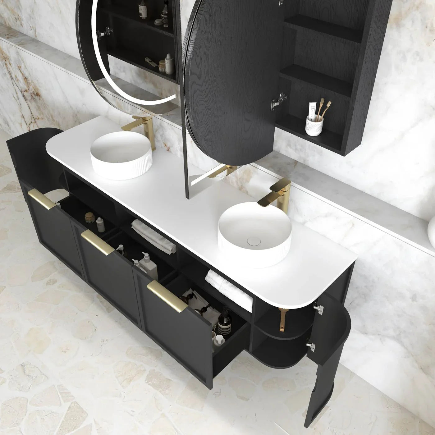 Add a sophisticated, modern edge to your bathroom with the BV06WH Wall Hung Curve Vanity. Featuring a smooth, curved silhouette and matte black finish, this vanity is the perfect blend of timeless elegance and everyday functionality. Constructed from durable, high-quality materials, it offers ample storage while enhancing your bathroom’s style.