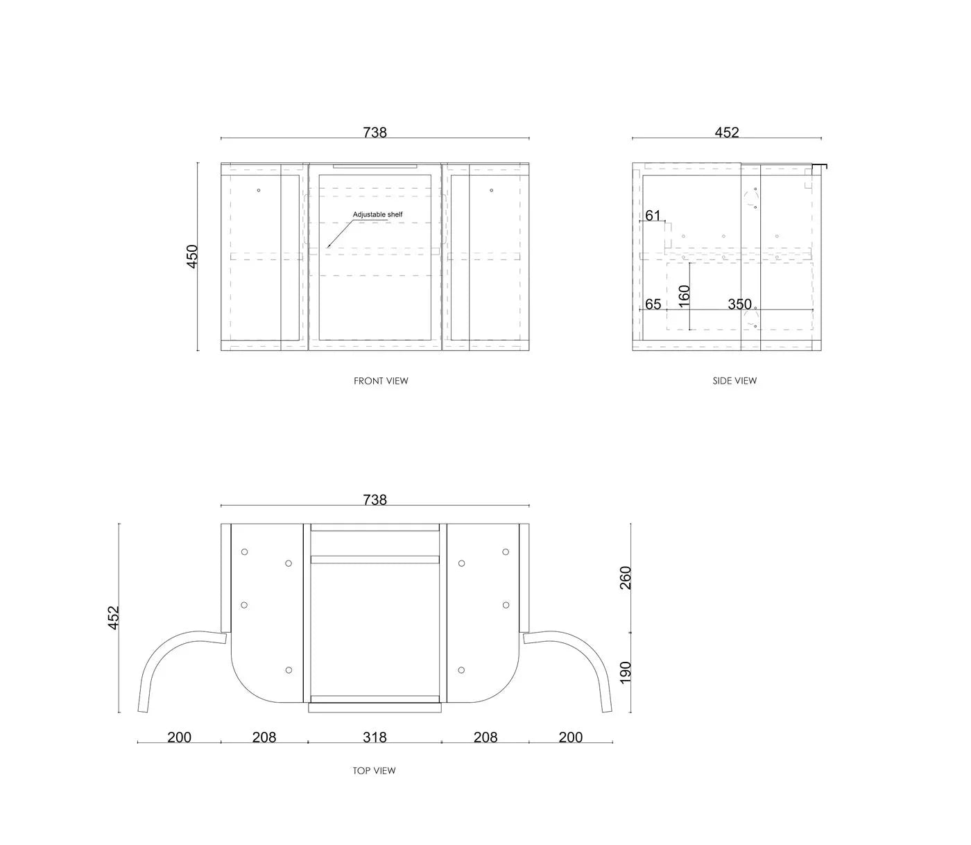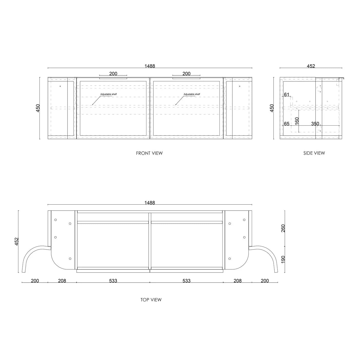 Soft-closing Hettich drawer runner ensures smooth operation, and the internal adjustable shelf offers added flexibility (tradesperson cutout required for plumbing).