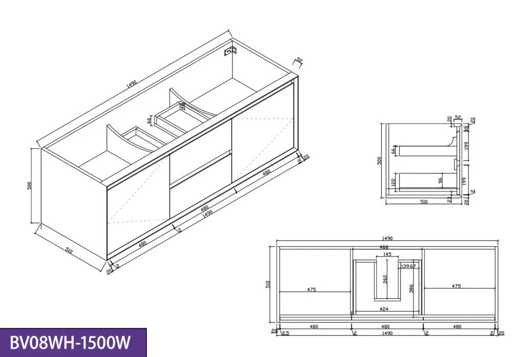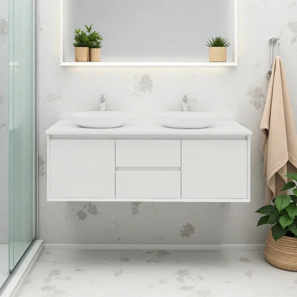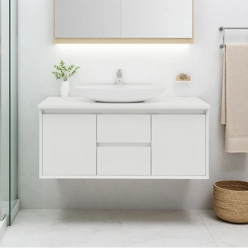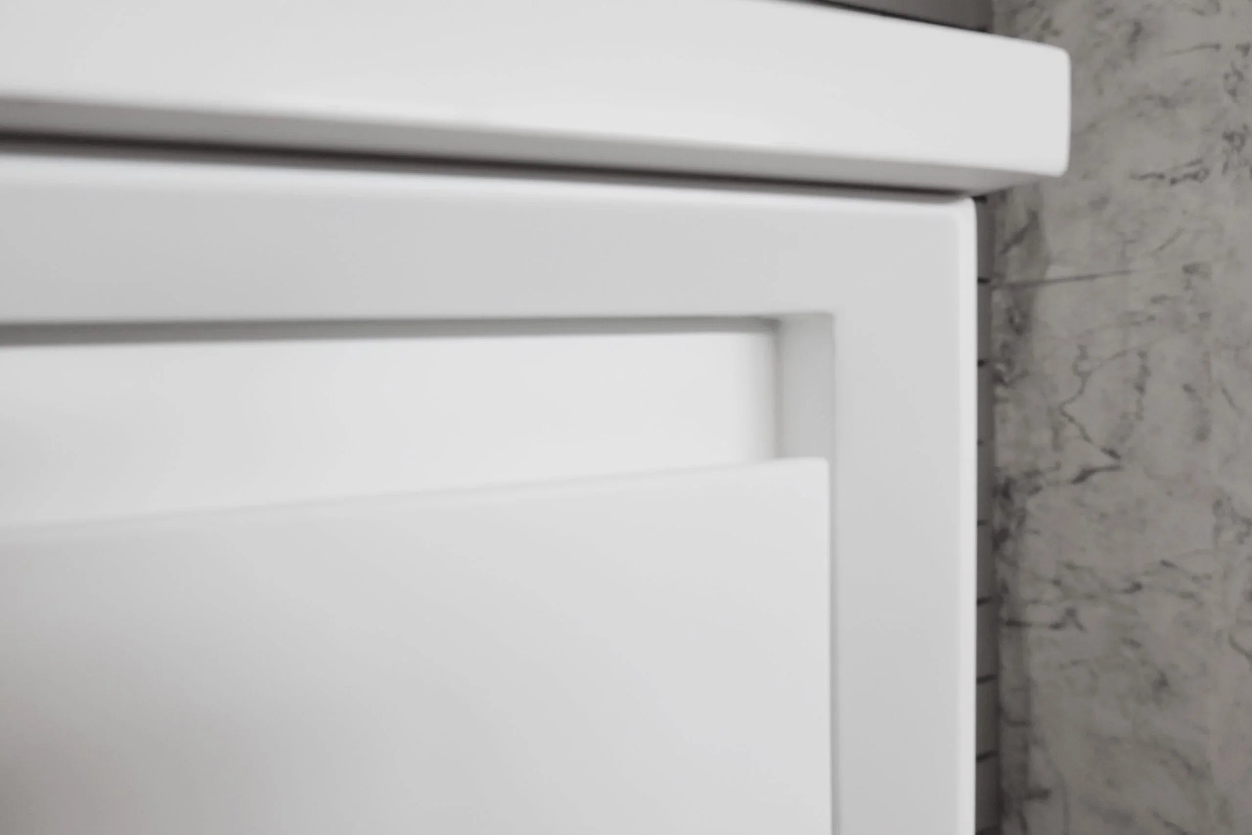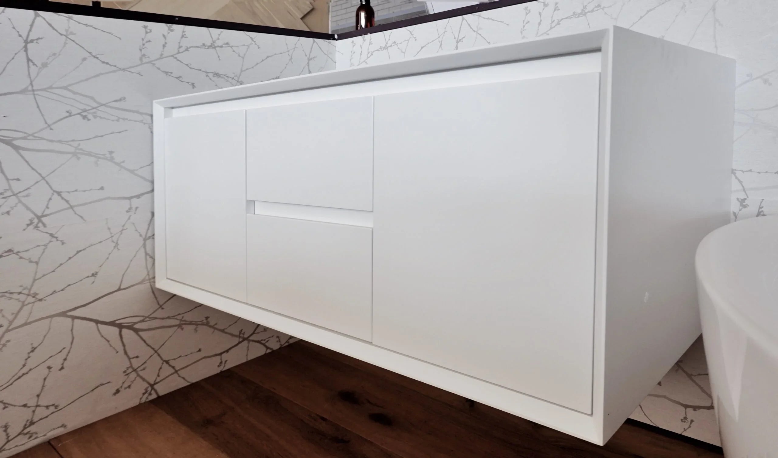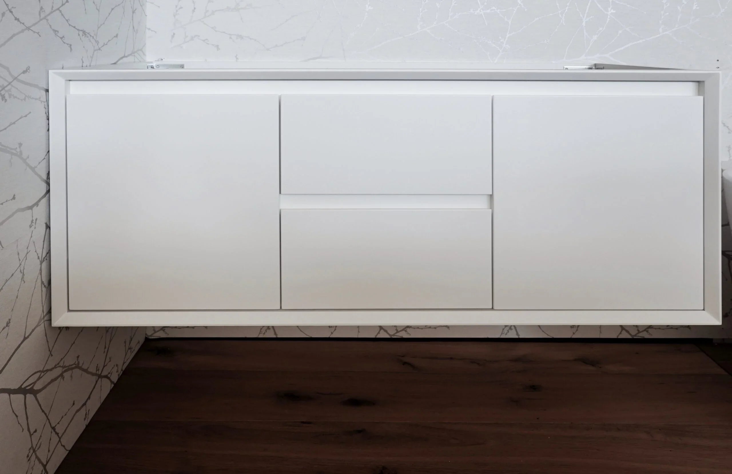 Elevate your bathroom with the BV08WH Wall Hung Vanity, a stunning blend of modern minimalism and functional luxury. Designed for those who love a sleek, handle-free aesthetic, this vanity features a Matte white 2-pack polyurethane finish that resists moisture, scratches, and stains while adding a bright, spacious feel to your bathroom.