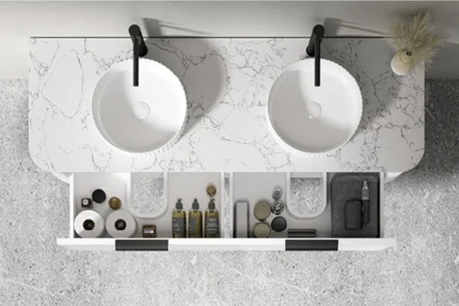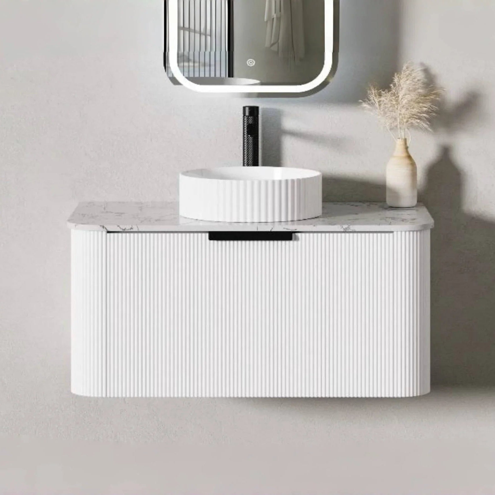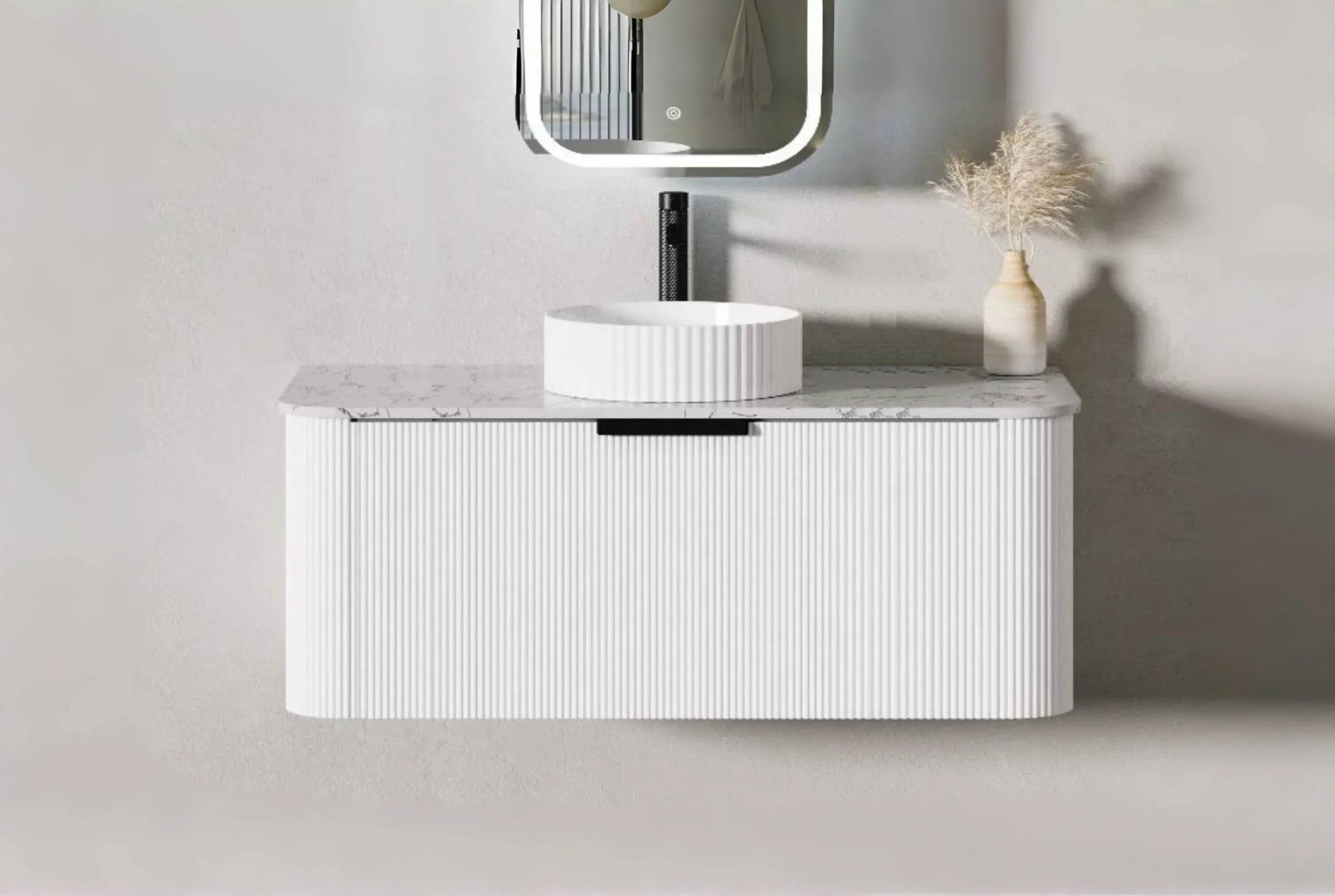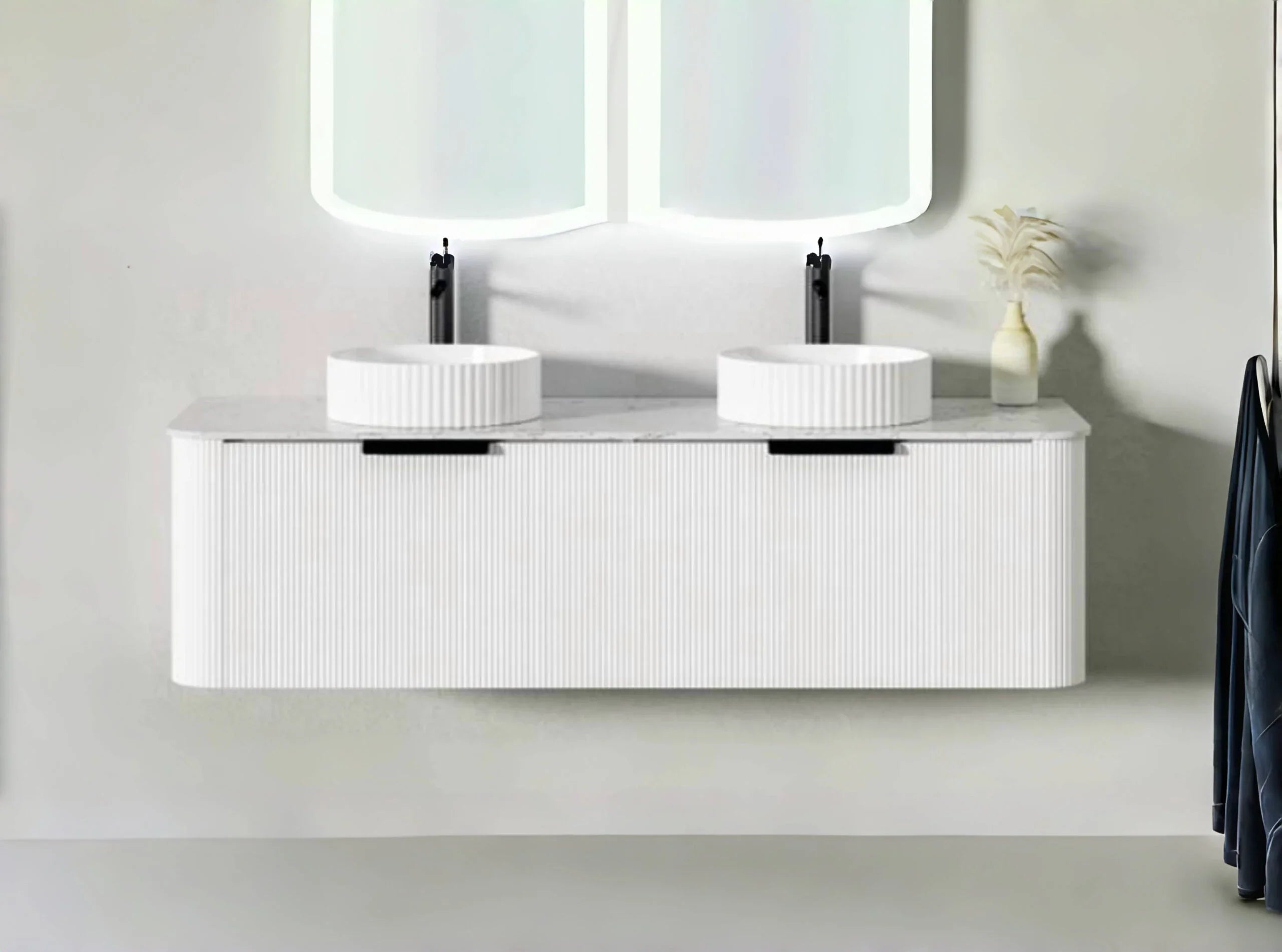 Transform your bathroom with the BV28WH Curved Wall-Hung Vanity, where refined craftsmanship meets everyday convenience. Its gracefully curved front and luxurious Fluted Matte White finish bring a touch of organic sophistication to modern spaces, while the wall-mounted design creates an airy, open feel—perfect for smaller bathrooms.