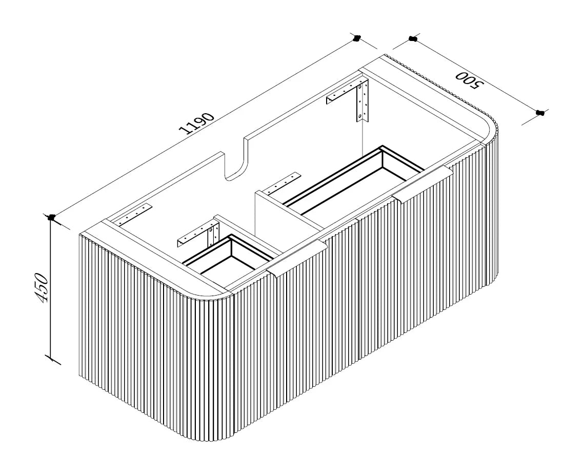 Transform your bathroom with the BV47WH Curved Wall-Hung Vanity, where refined craftsmanship meets everyday convenience. Its gracefully curved front and luxurious Fluted timber finish bring a touch of organic sophistication to modern spaces, while the wall-mounted design creates an airy, open feel—perfect for smaller bathrooms.