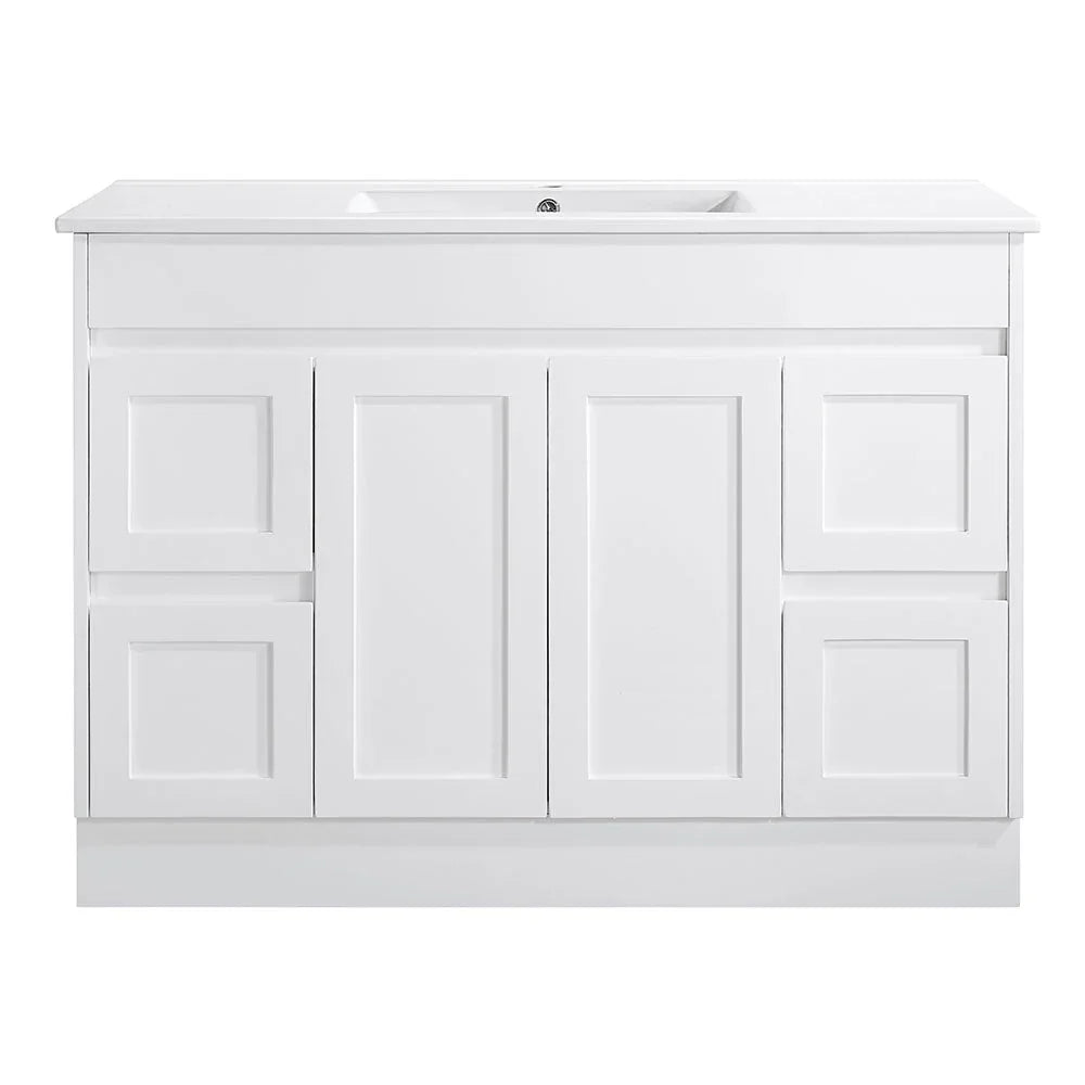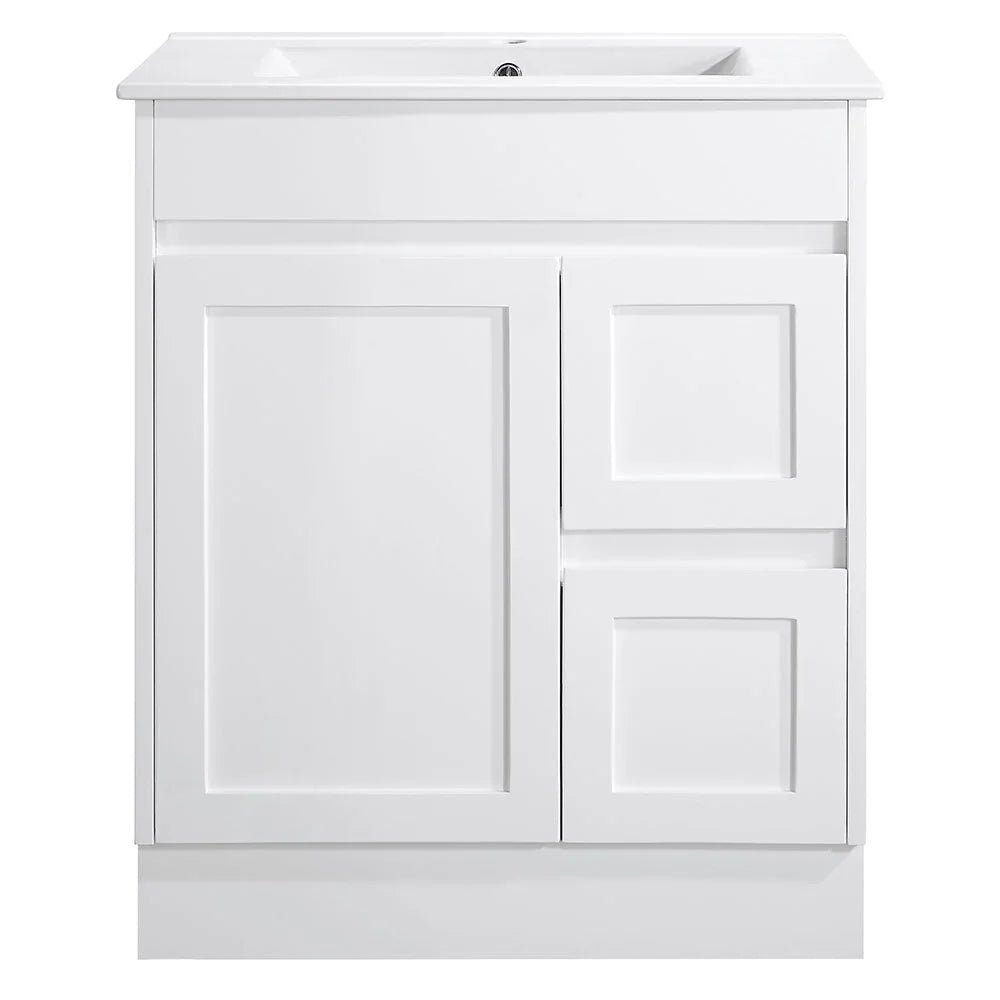 Choose between a seamless ceramic molded top for a fuss-free, integrated look or various stone benchtop options to match your unique style. With soft-close storage, a finger pull opening, and multiple size options, this vanity combines effortless elegance with everyday convenience.