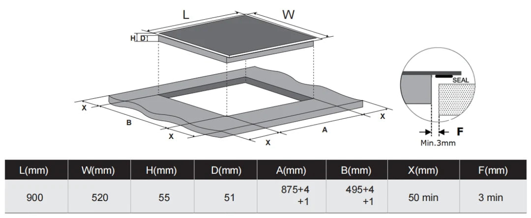 • Building-in Dimensions A×B (mm) : 875 x 495