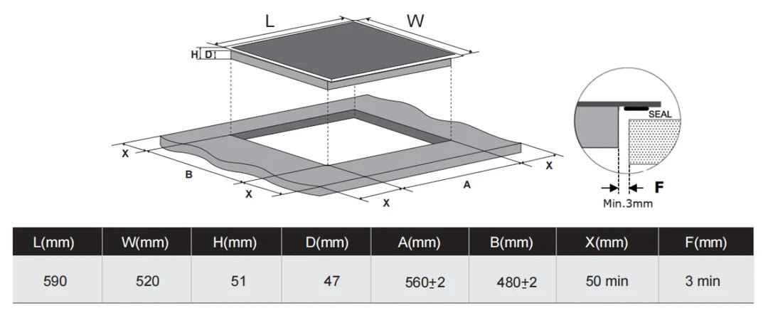 • Building-in Dimensions A×B (mm) : 560 x 480