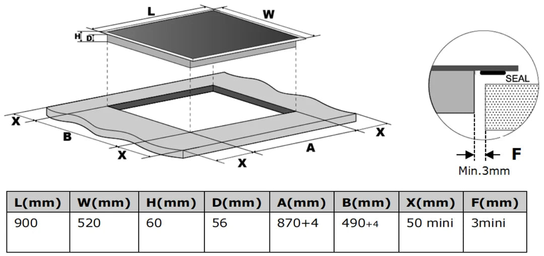 • Building-in Dimensions A×B (mm) : 874 x 494