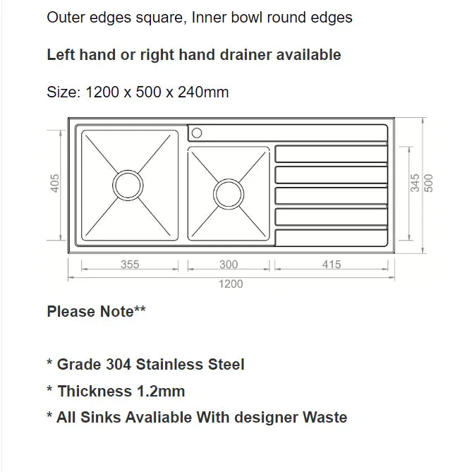 | Main Bowl Dimensions | 355 x 405mm |