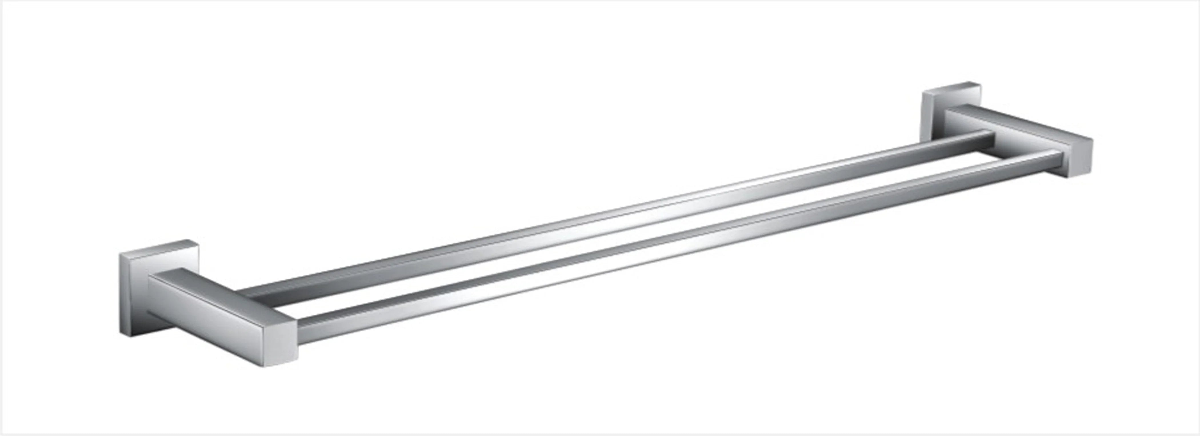 Square Double Towel Rail 600mm / 750mm / 900mm - Chrome / Black
