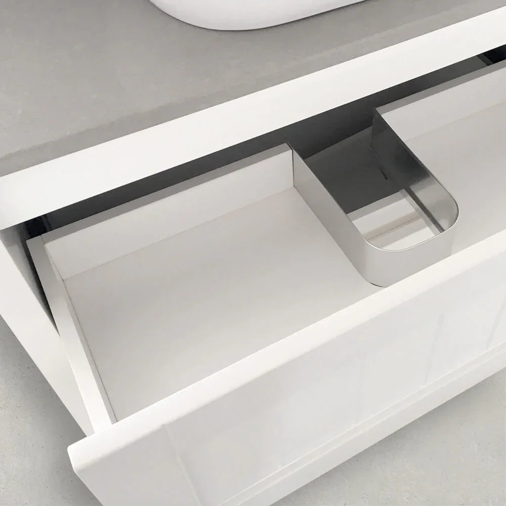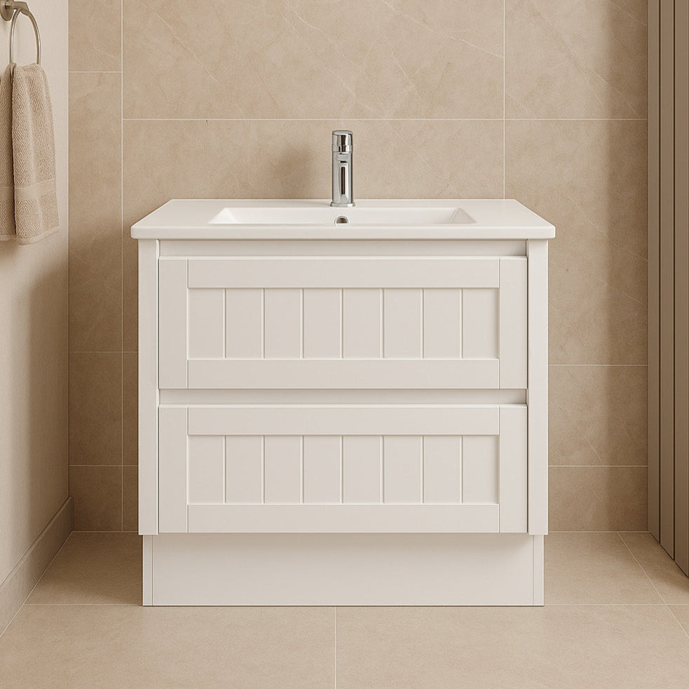 Elevate your bathroom with the BV23 Floor Standing Vanity, a stunning blend of modern minimalism and functional luxury. Designed for those who love a sleek, handle-free aesthetic, this vanity features a Matte white 2-pack polyurethane Hampton Style finish that resists moisture, scratches, and stains while adding a bright, spacious feel to your bathroom.