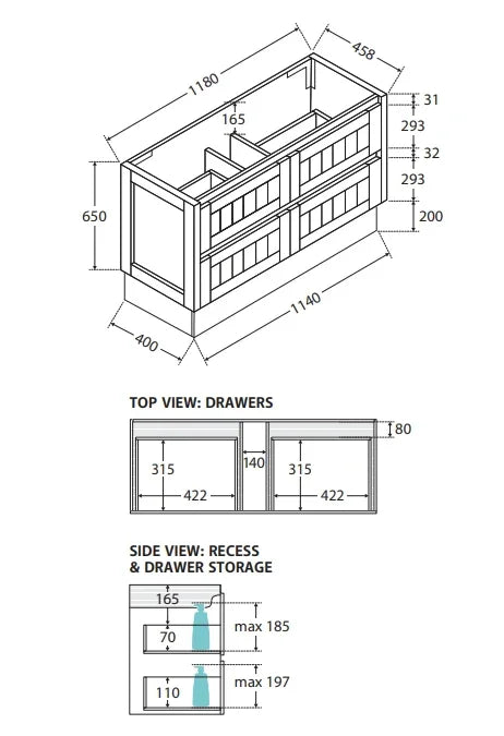 750mm, 900mm, and 1200mm to fit any bathroom layouts