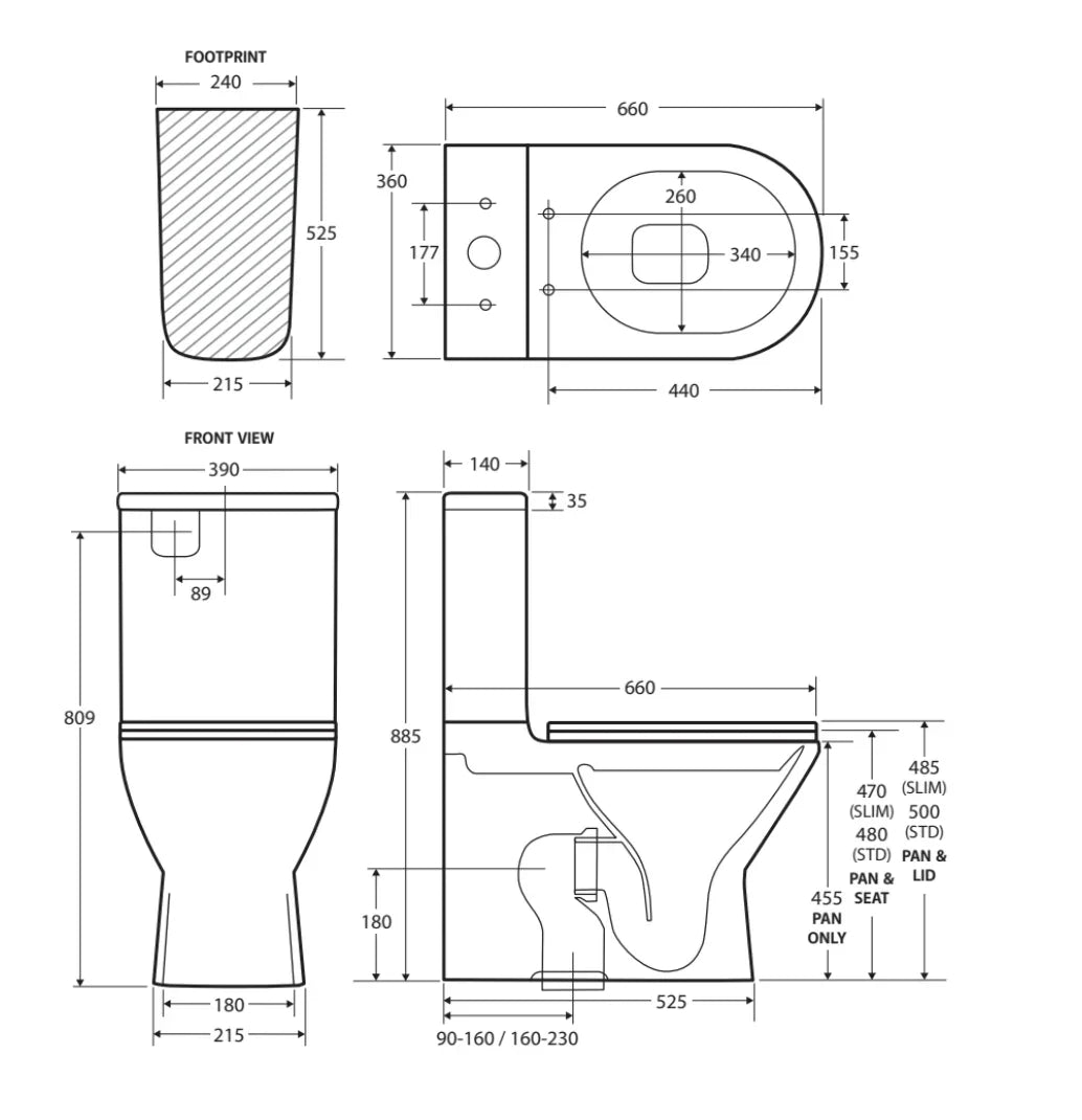 | Trap Set Out | S-trap: 90 – 160 mm, Extendable to 230 mm (Optional at Extra Cost), P-trap: 180 mm |
