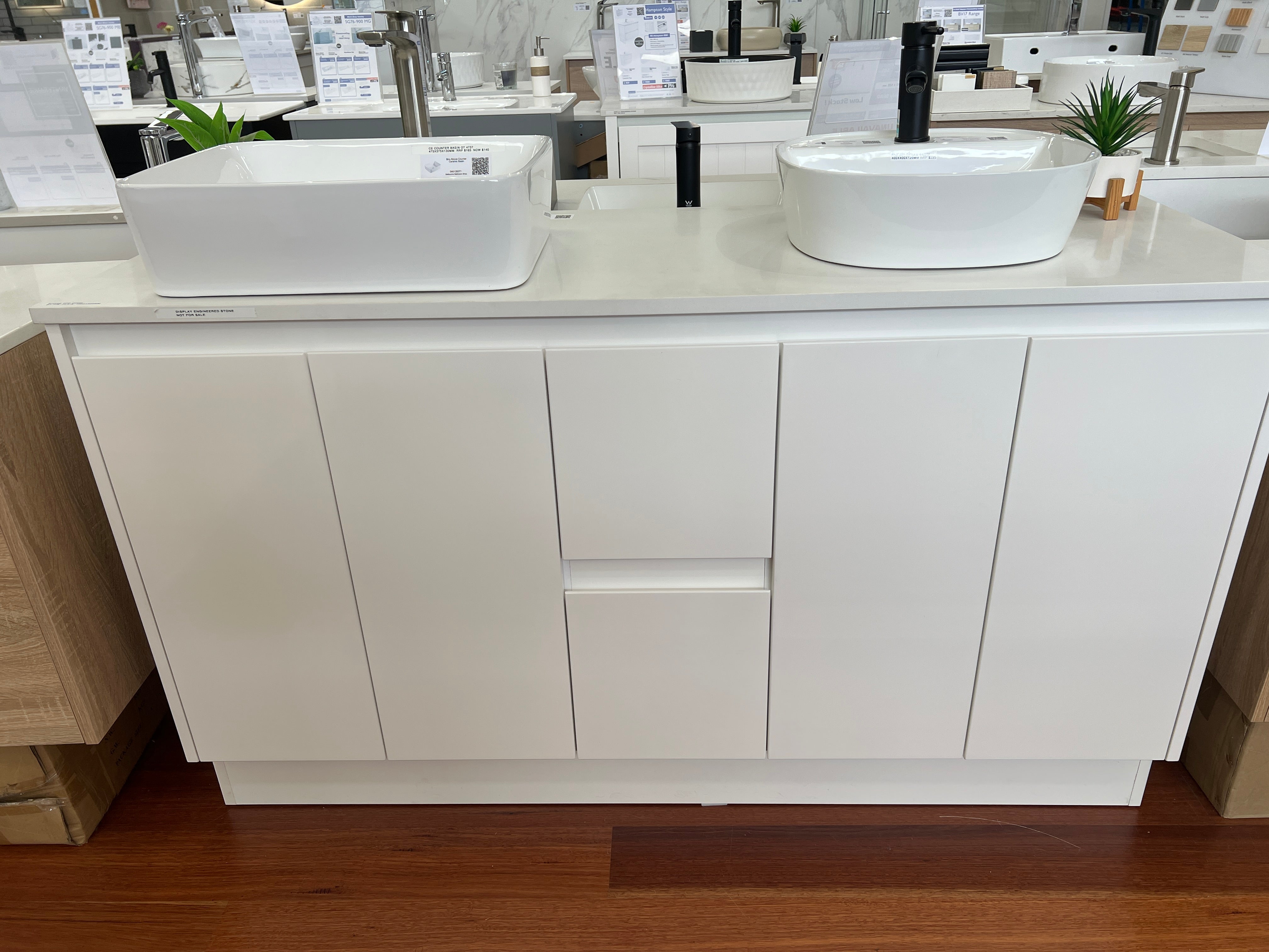 Gloss White Vanity w/ Flat Stone Top - 1500x520mm (Floor Display)