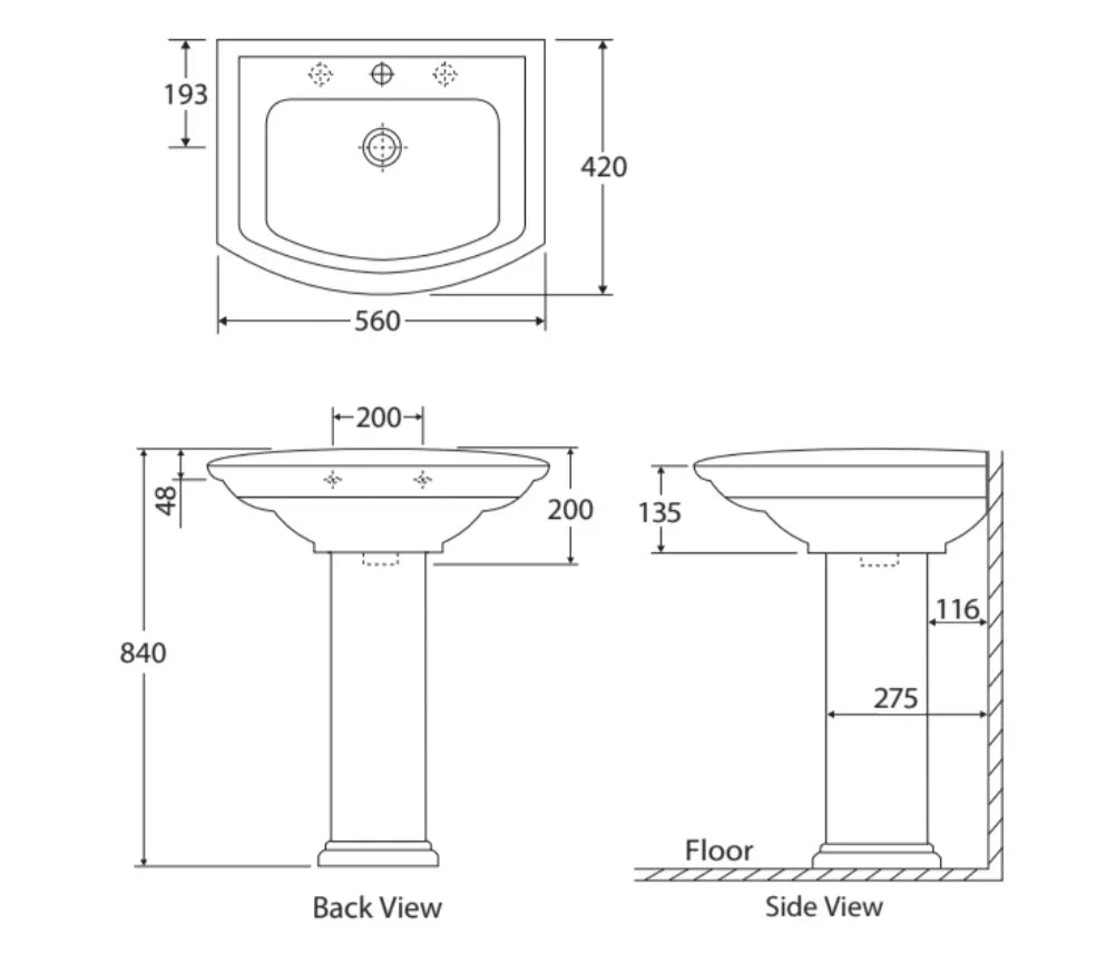 It has exceptional presence and strength of character. This classic style pedestal and basin with period features will complement any traditional style bathroom.