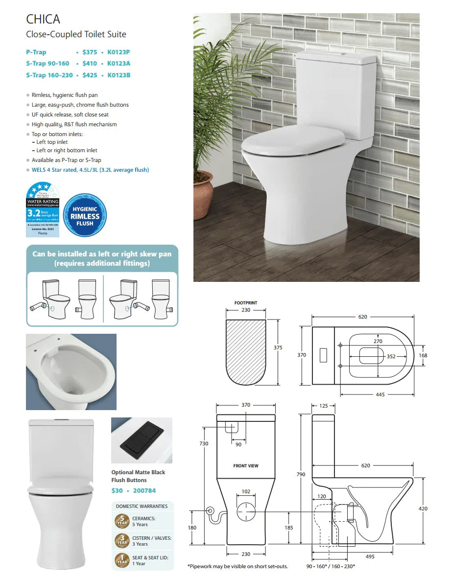 | Product Type | Close Coupled Toilet Suite with Skew Pan Connector |
