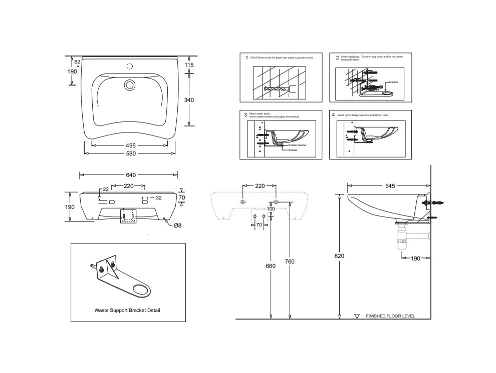 • Robust Wall Mountings with Stainless Steel Waste Support Bracket