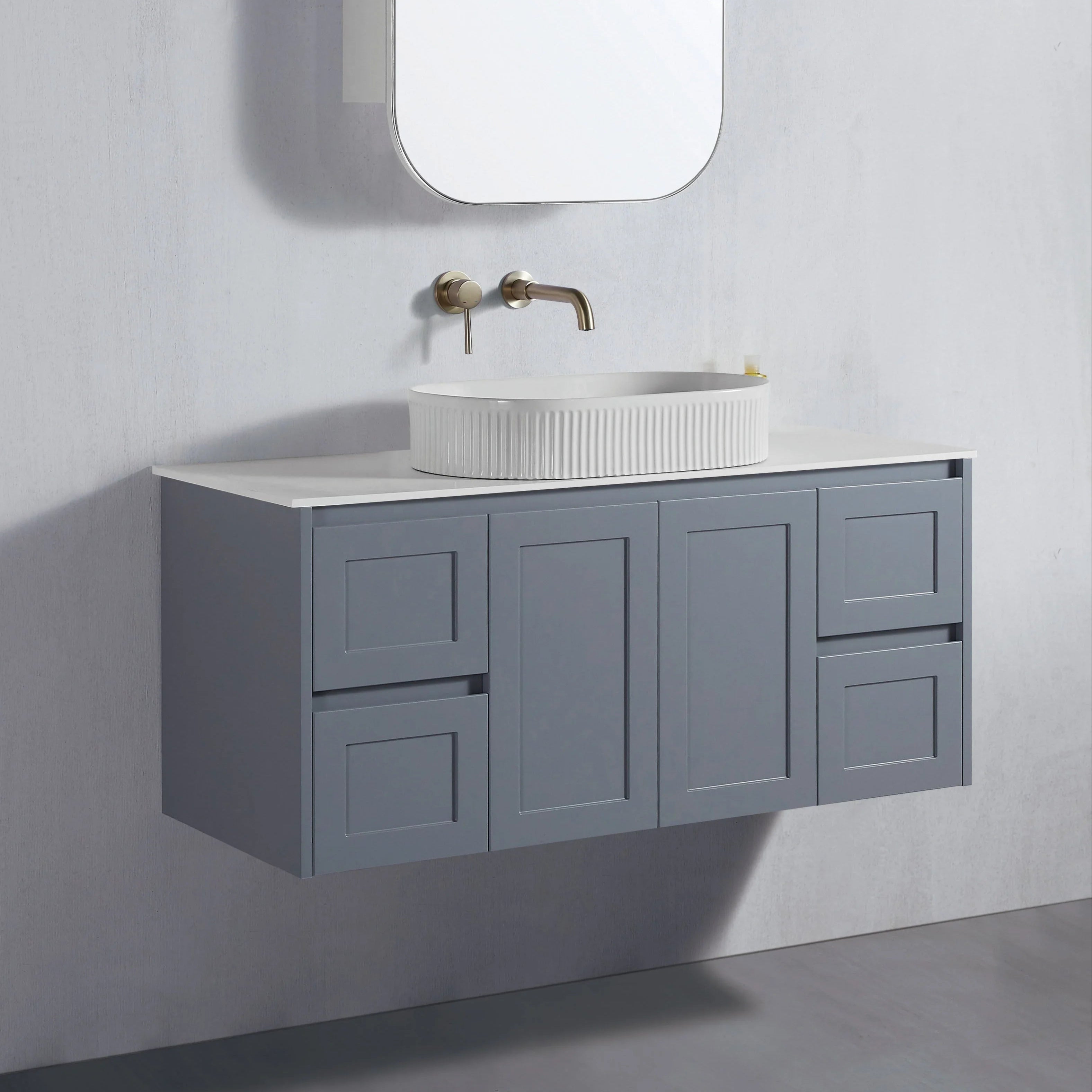 Elevate your bathroom with the BV56WH Wall Hung Vanity, a stunning blend of modern minimalism and functional luxury. Designed for those who love a sleek, handle-free aesthetic, this vanity features a Matte Grey 2-pack polyurethane Shaker Style finish that resists moisture, scratches, and stains while adding a bright, spacious feel to your bathroom.