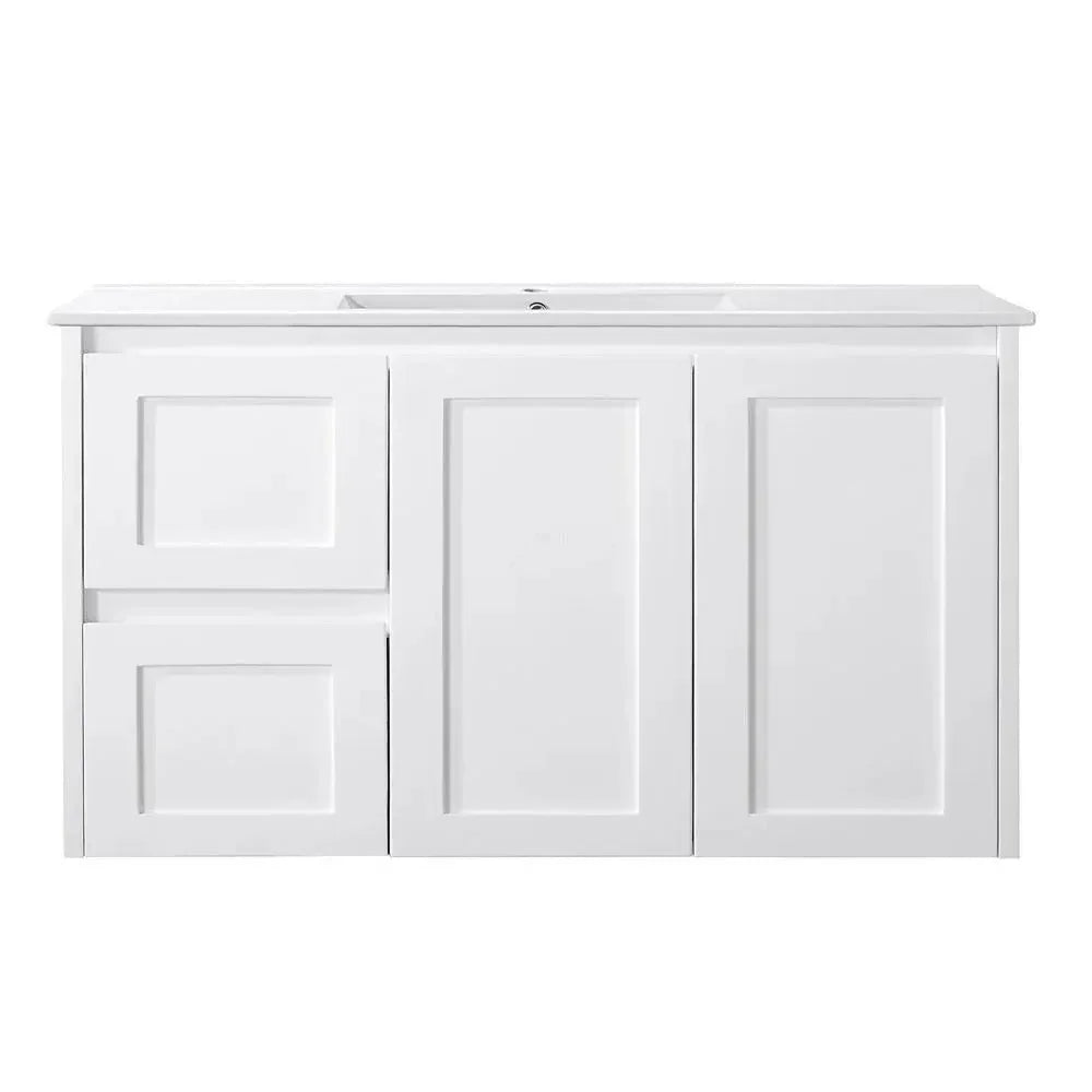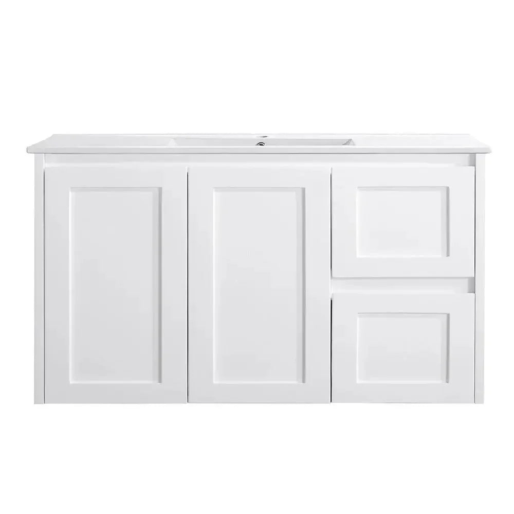 Choose between a seamless ceramic molded top for a fuss-free, integrated look or various stone benchtop options to match your unique style. With soft-close storage, a finger pull opening, and multiple size options, this vanity combines effortless elegance with everyday convenience.