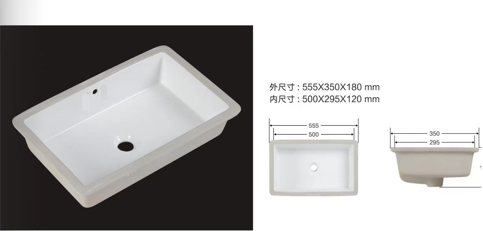 MBS Edge Rectangular Undermount Ceramic Basin 555 x 350mm