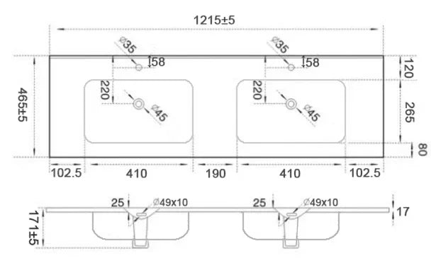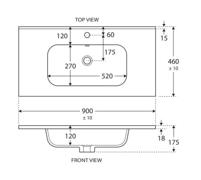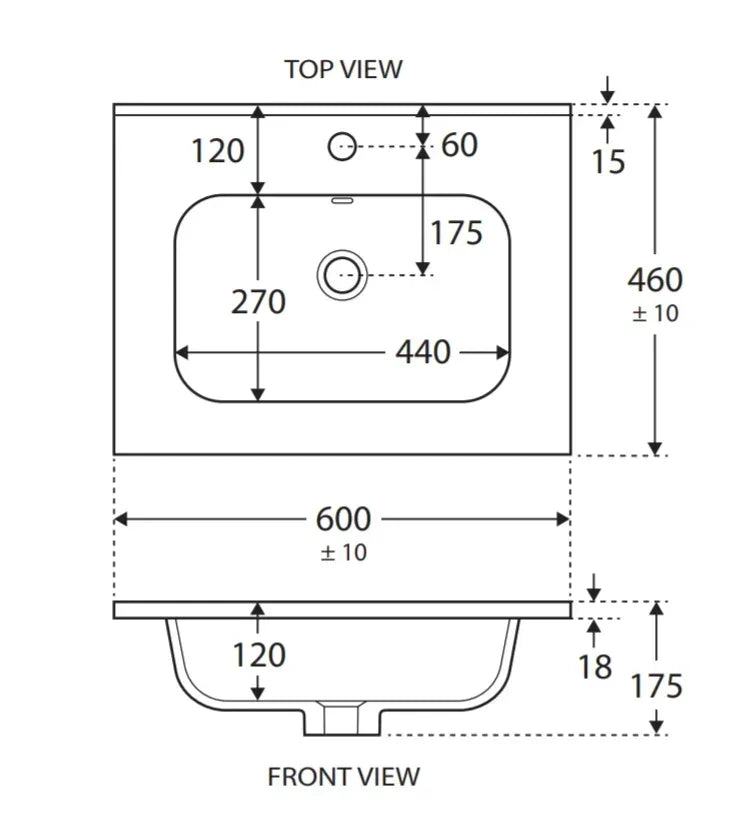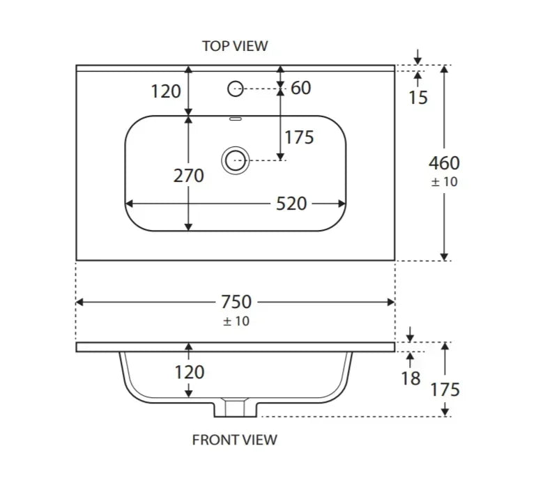 • 18 mm thick vitreous china