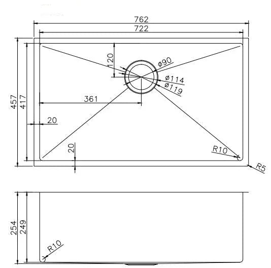 Crafted from high-grade stainless steel grade, this sink is also equipped with advanced sound-absorption technology to dampen the sound of water impact during use. The sink boasts custom folded drainage channels that are ergonomically designed to prevent water pooling. This further minimizes the risk of bacterial growth and staining.