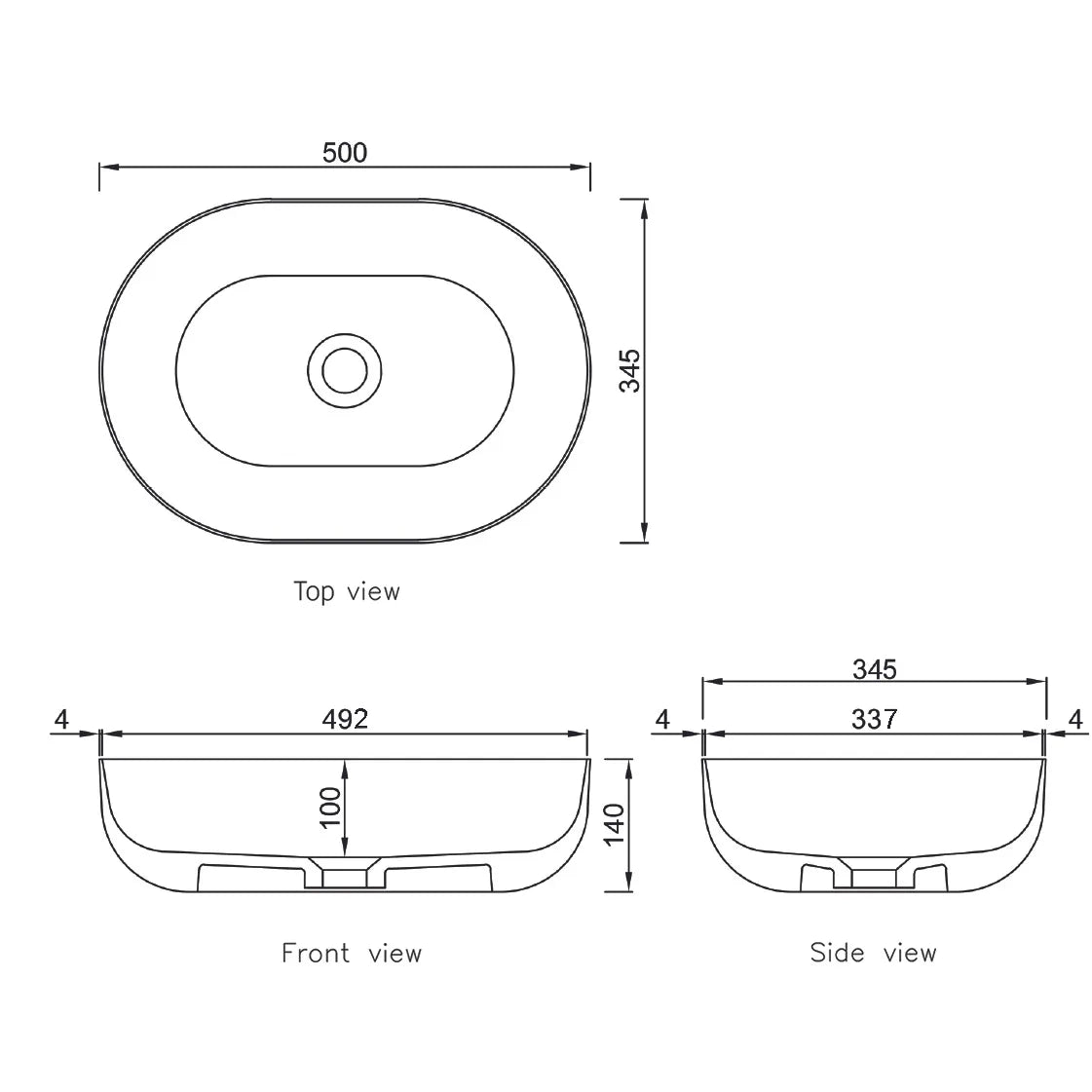 Noosa Counter Top Solid Surface Basin 500x345mm - Matte White