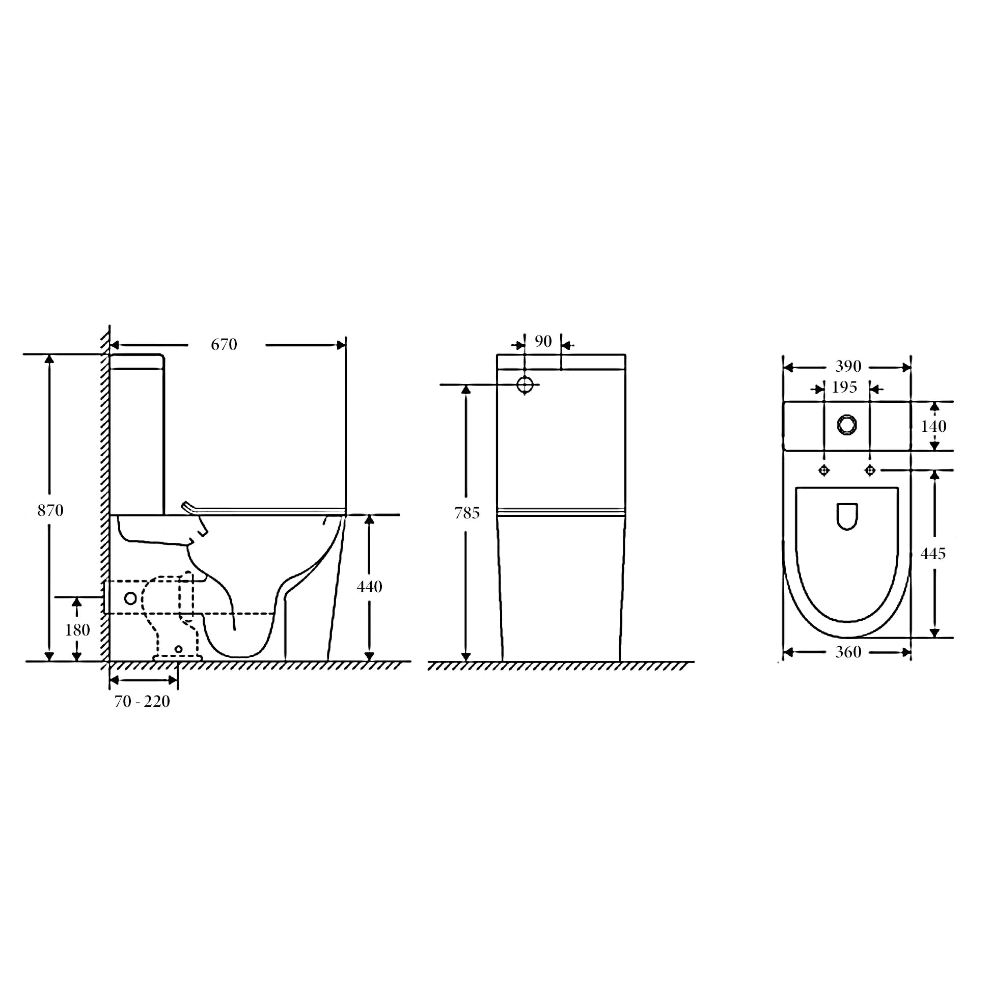 | Trap Set Out | S-trap: 70 – 170 mm, Extendable to 220 mm (Optional at Extra Cost), P-trap: 180 mm |