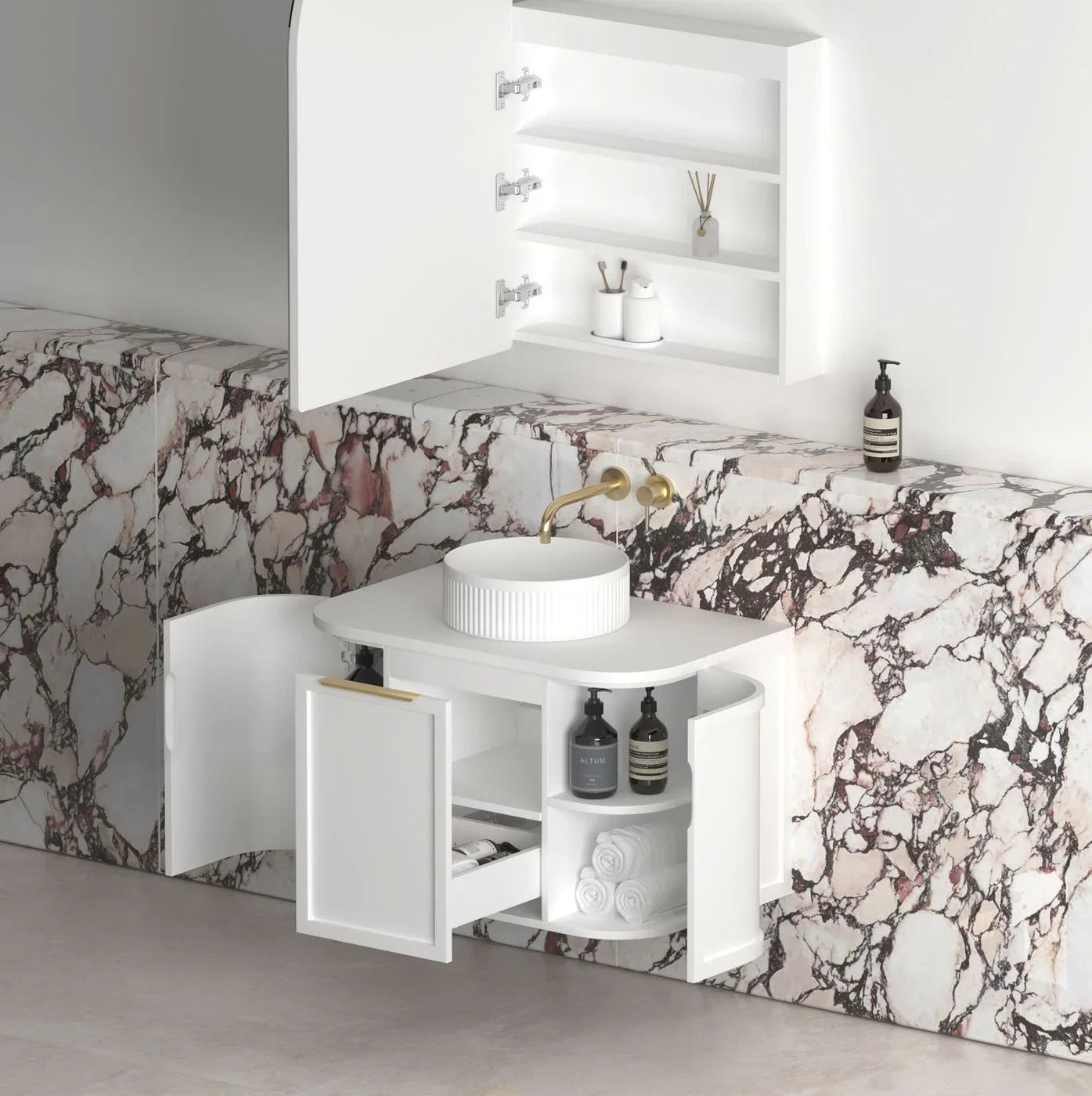 Add a sophisticated, modern edge to your bathroom with the BV57WH Wall Hung Curve Vanity. Featuring a smooth, curved silhouette and matte white finish, this vanity is the perfect blend of timeless elegance and everyday functionality. Constructed from durable, high-quality materials, it offers ample storage while enhancing your bathroom’s style.