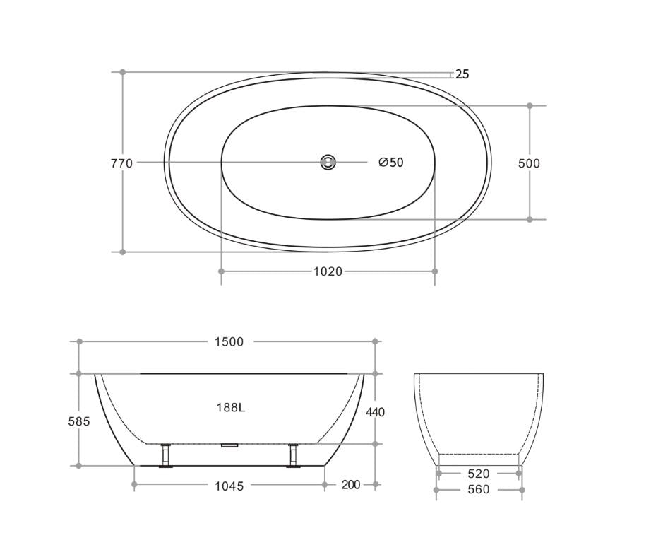 • Freestanding Bath - Made from premium sanitary grade acrylic 6mm sheeting