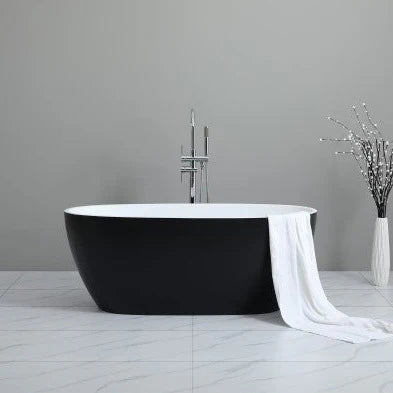 Make a bold statement in your modern bathroom with this striking oval freestanding bath. Featuring a distinctive egg-shaped design, it brings both elegance and contemporary flair to any space. Available in mix of black and white, it offers versatile styling to suit a wide range of bathroom décors.