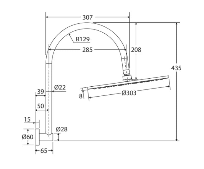 Slim Curved High-Rise Overhead Shower Arm with Head - Various Colours