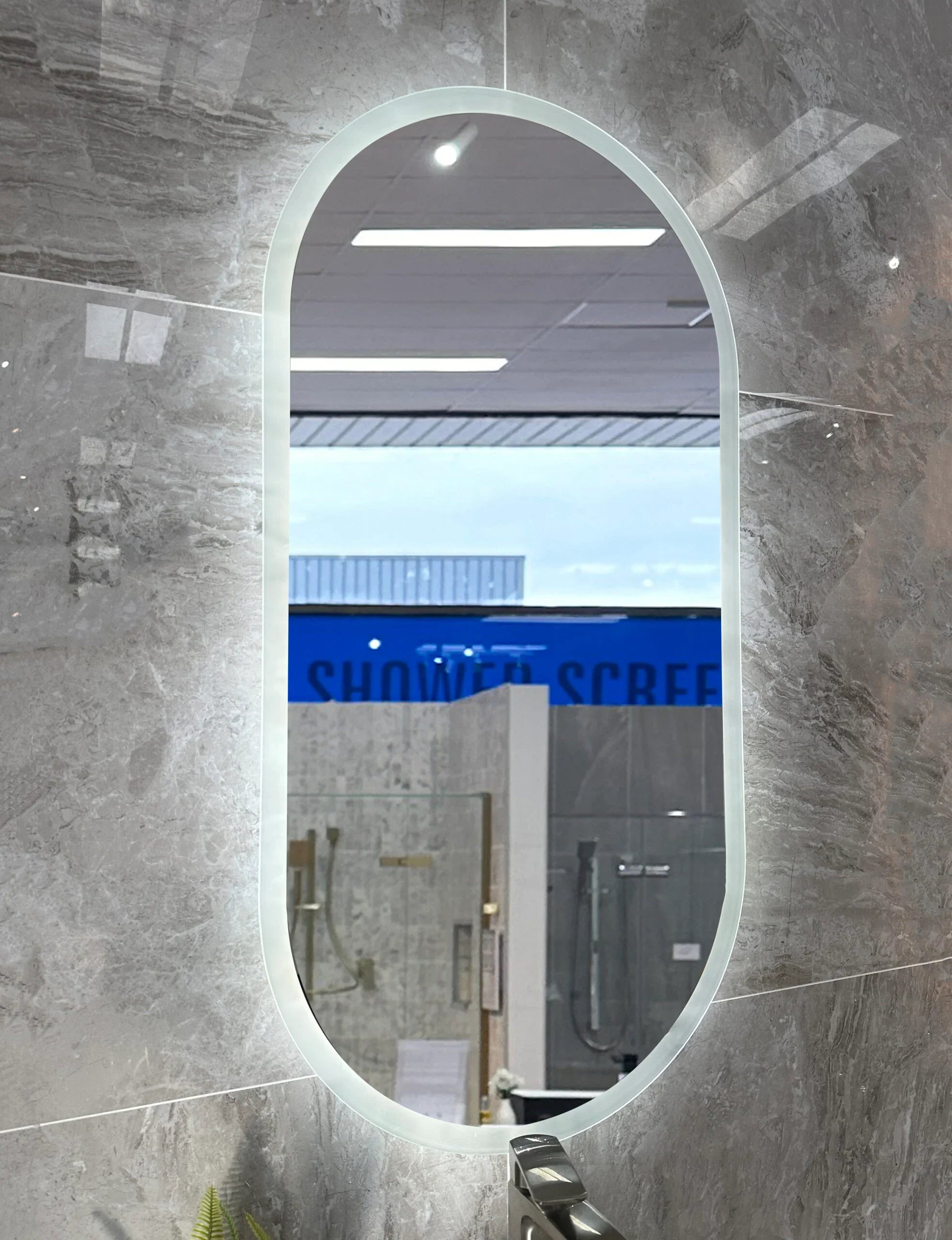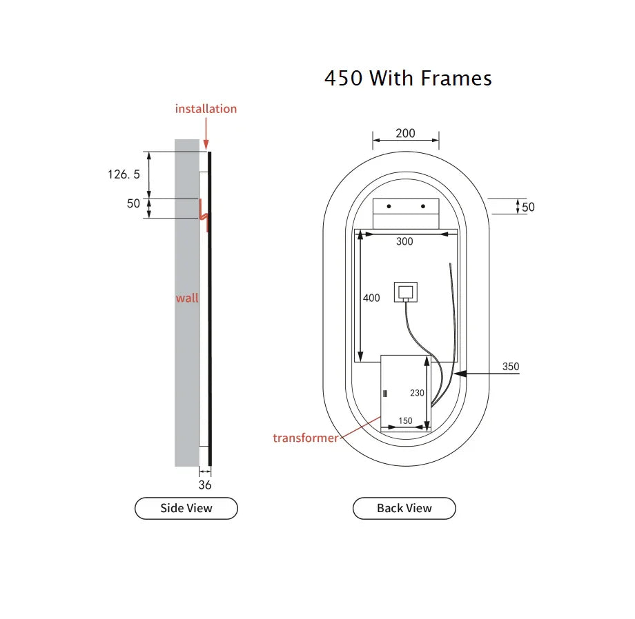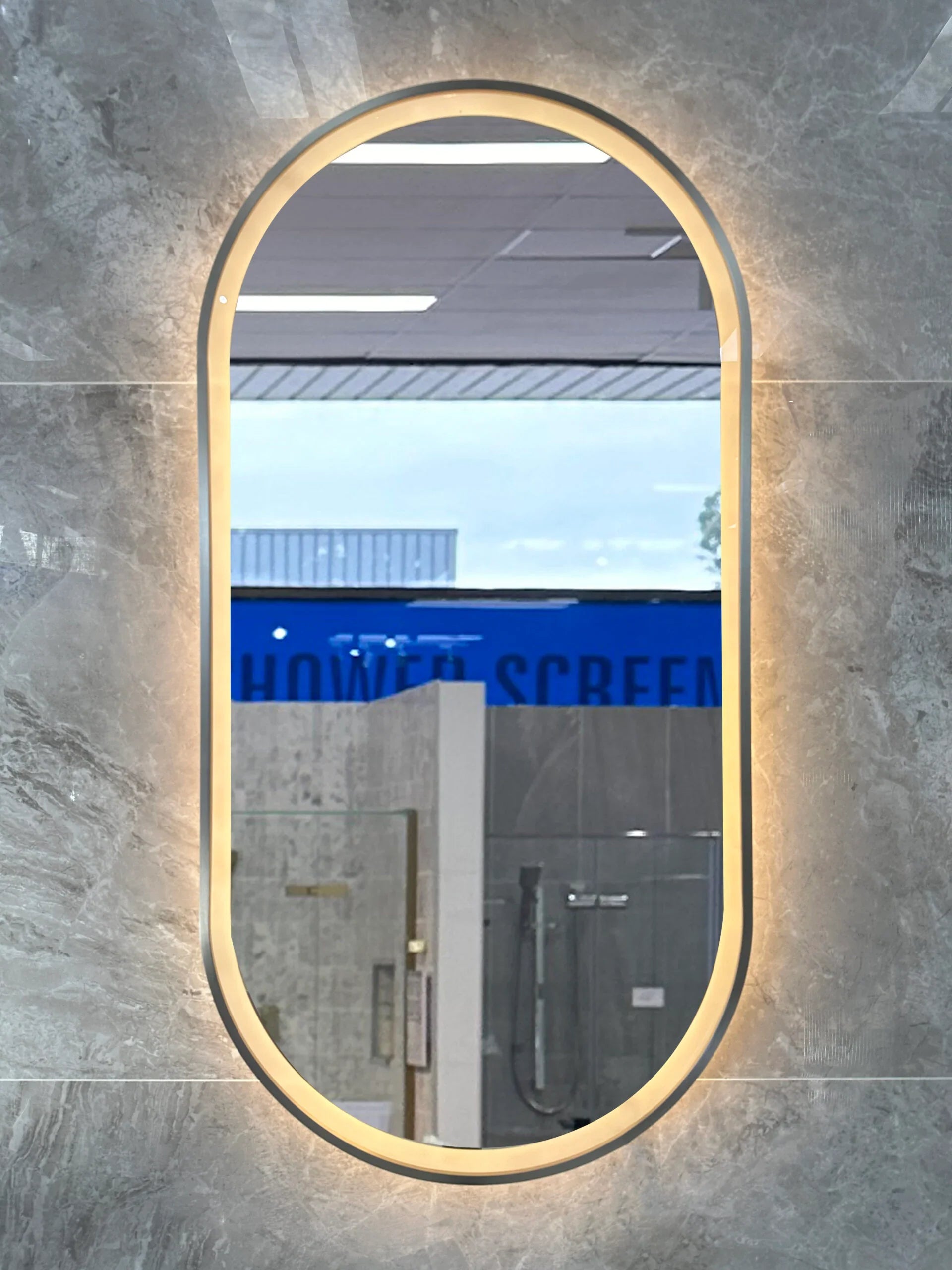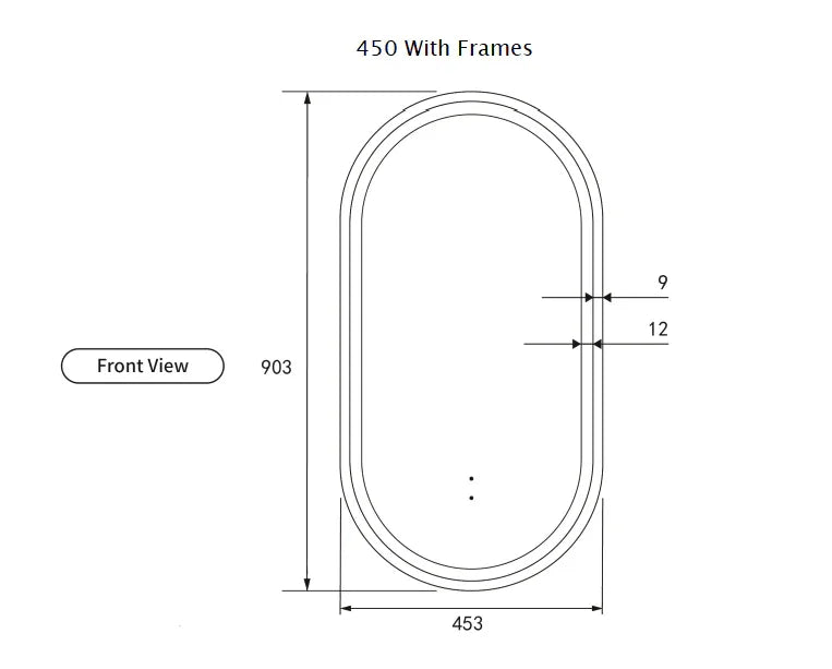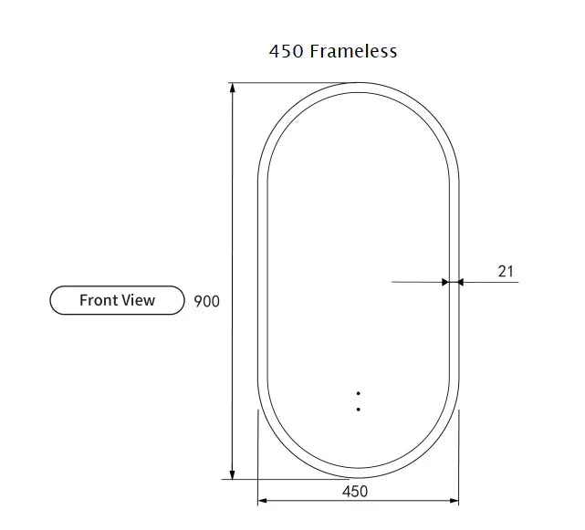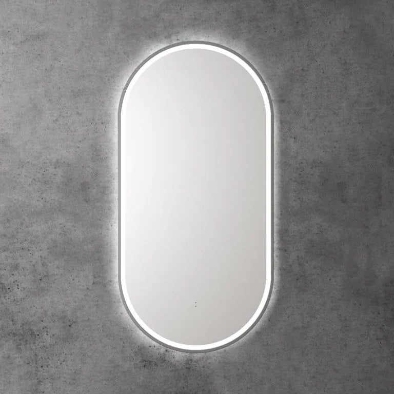 Pill Shape LED Mirror Touchless switch with Demister 450x900mm - Frameless / with Frame