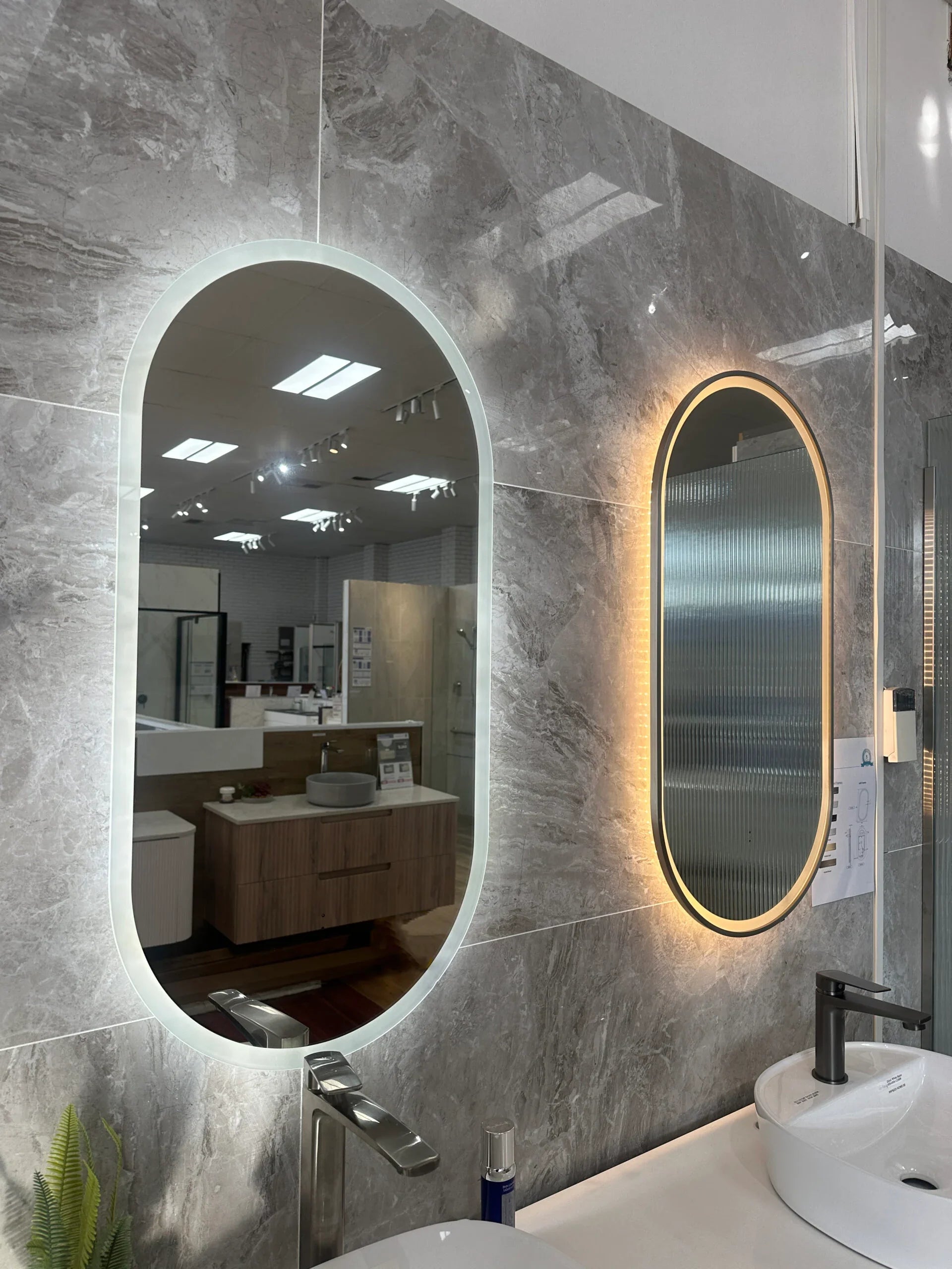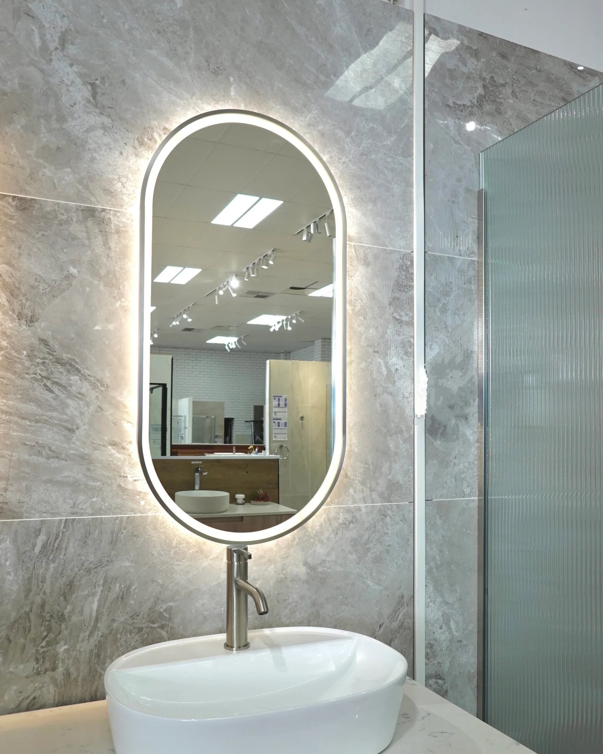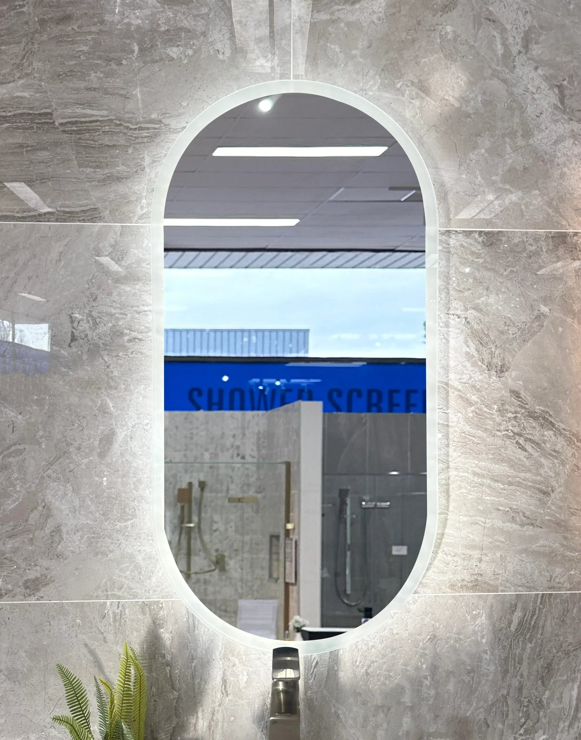 Pill Shape LED Mirror Touchless switch with Demister 450x900mm - Frameless / with Frame