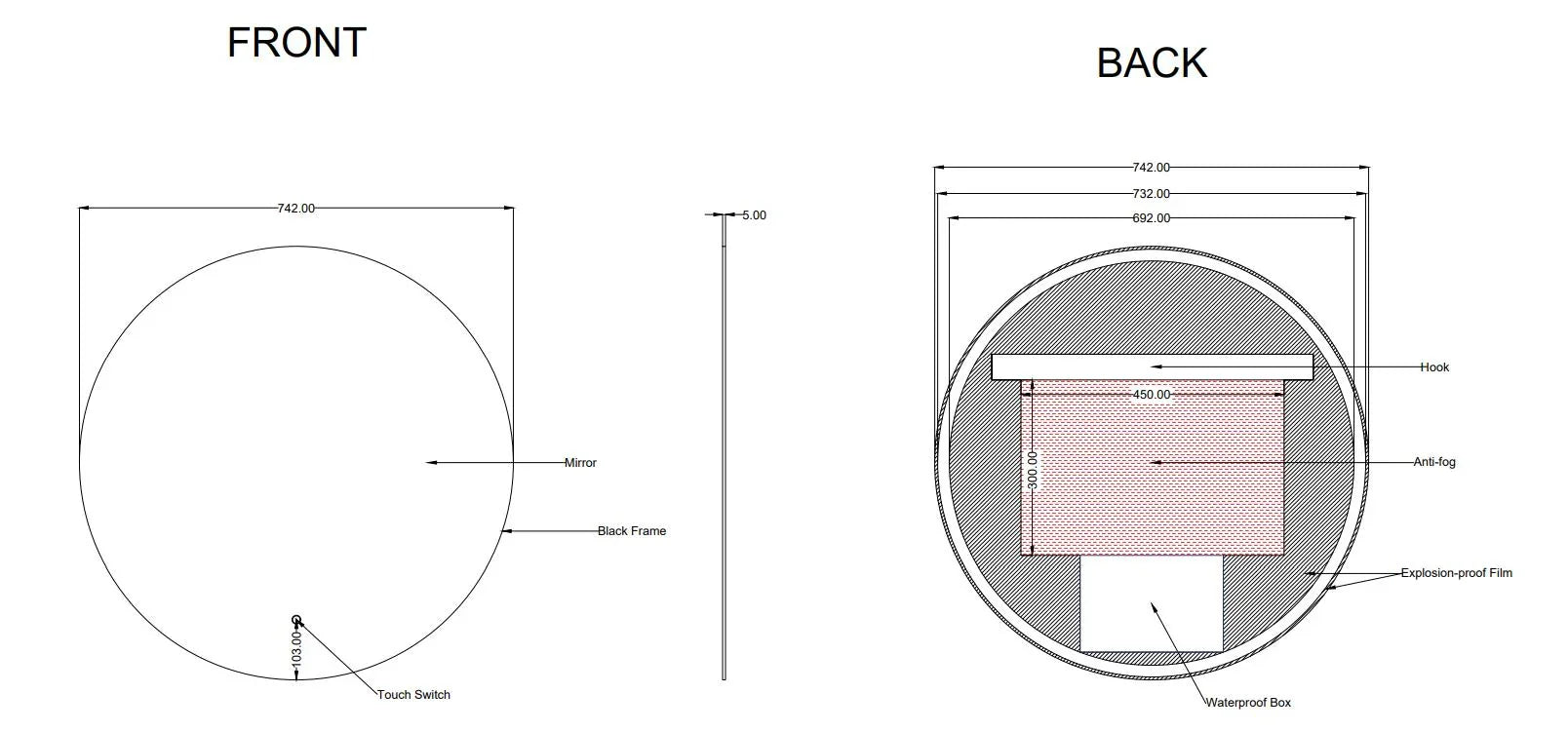 Round Framed LED Mirror with Demister 750mm - Various Colours Frame