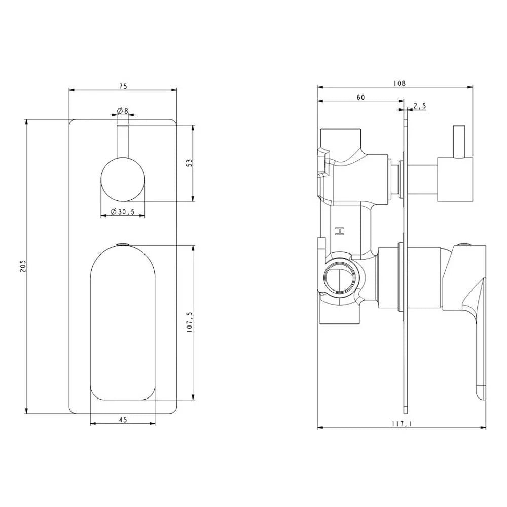 SMD23 Soft Square Shower / Bath Mixer with Diverter - Various Colours