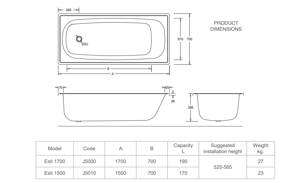 | Purchase Does Not Include | 40mm Plug and Waste |